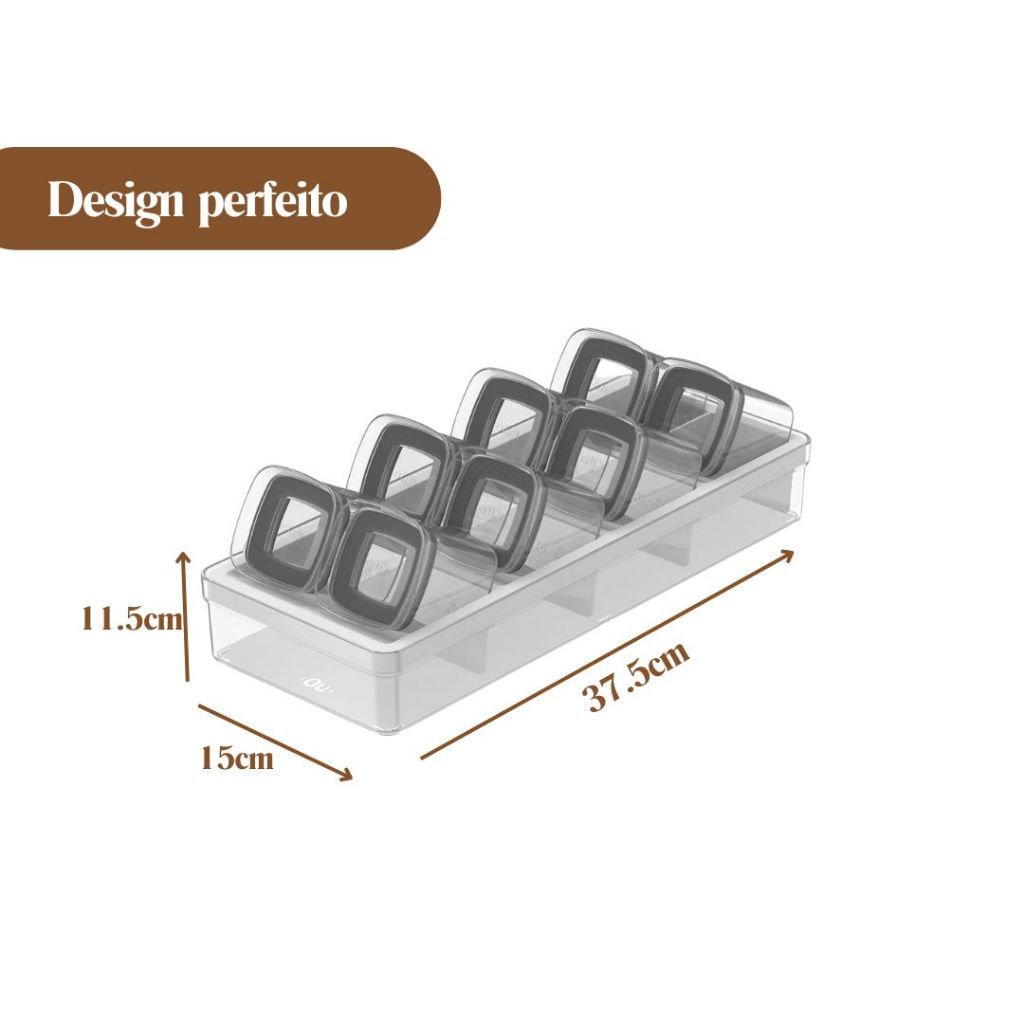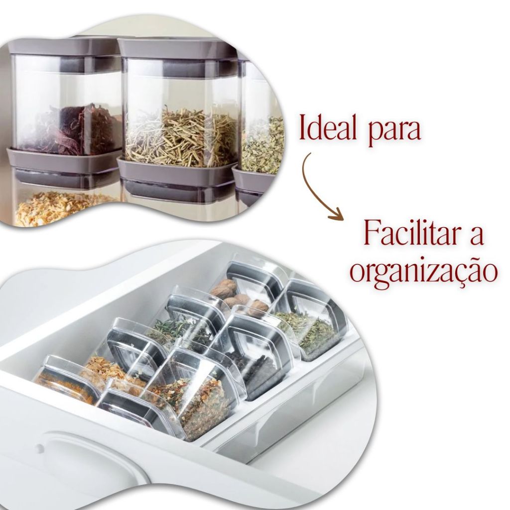 Kit 6 Mini Potes Herméticos Block Porta Temperos Transparente Condimentos Empilháveis 150ml Quadrado