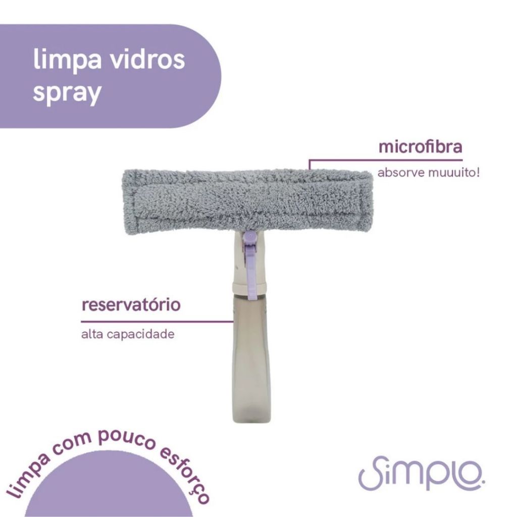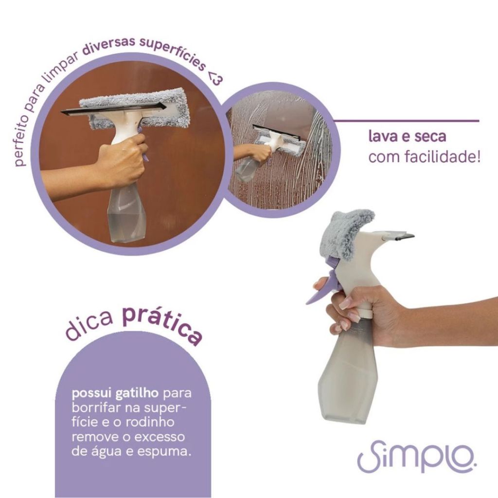 Limpa vidros 3 em 1 com rodo Spray e Reservatório 510ml Simplo Limpeza de Janelas