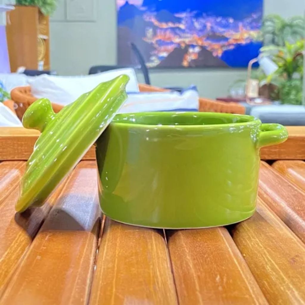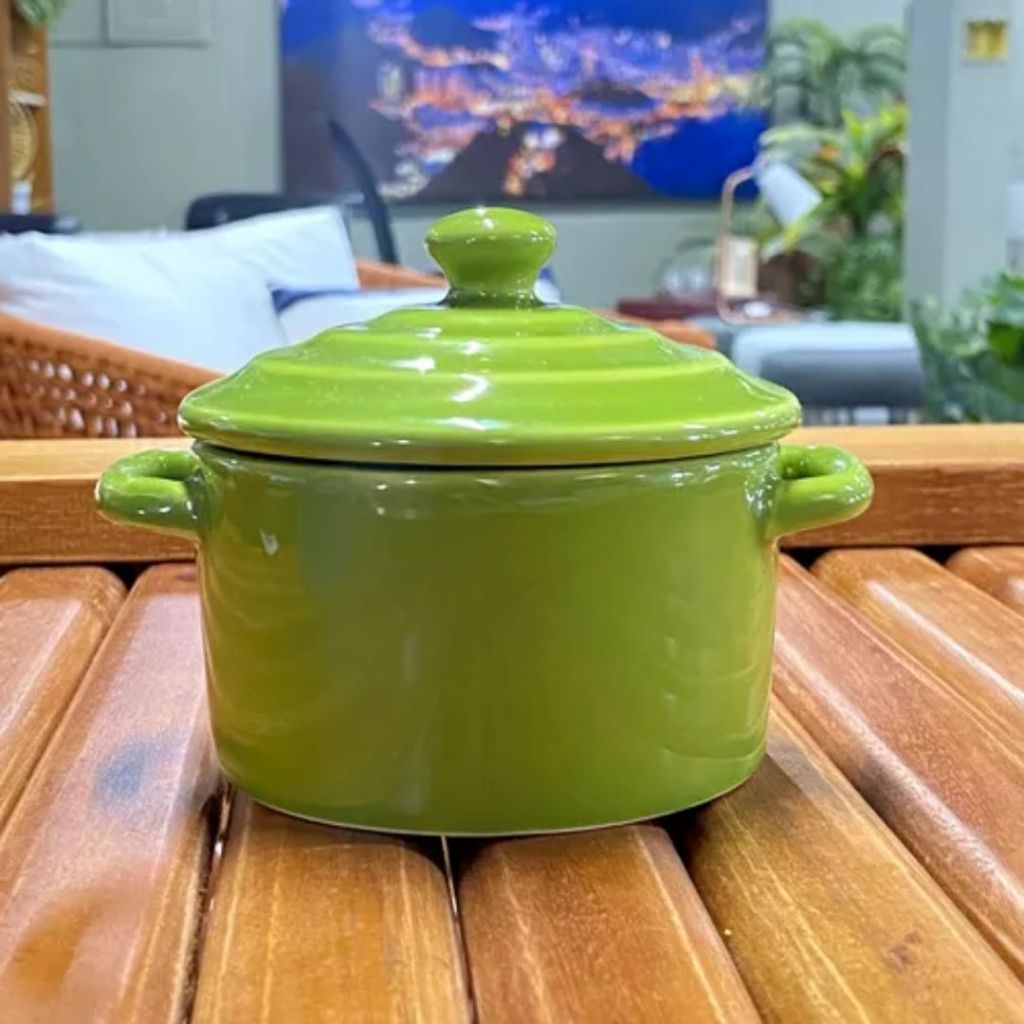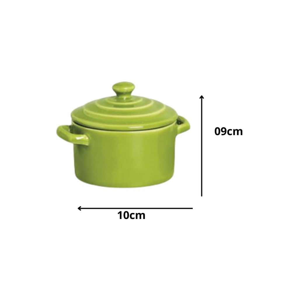 Kit 6 Mini Caçarolas Cerâmica Panelinha C/ Tampa Verde 250ml