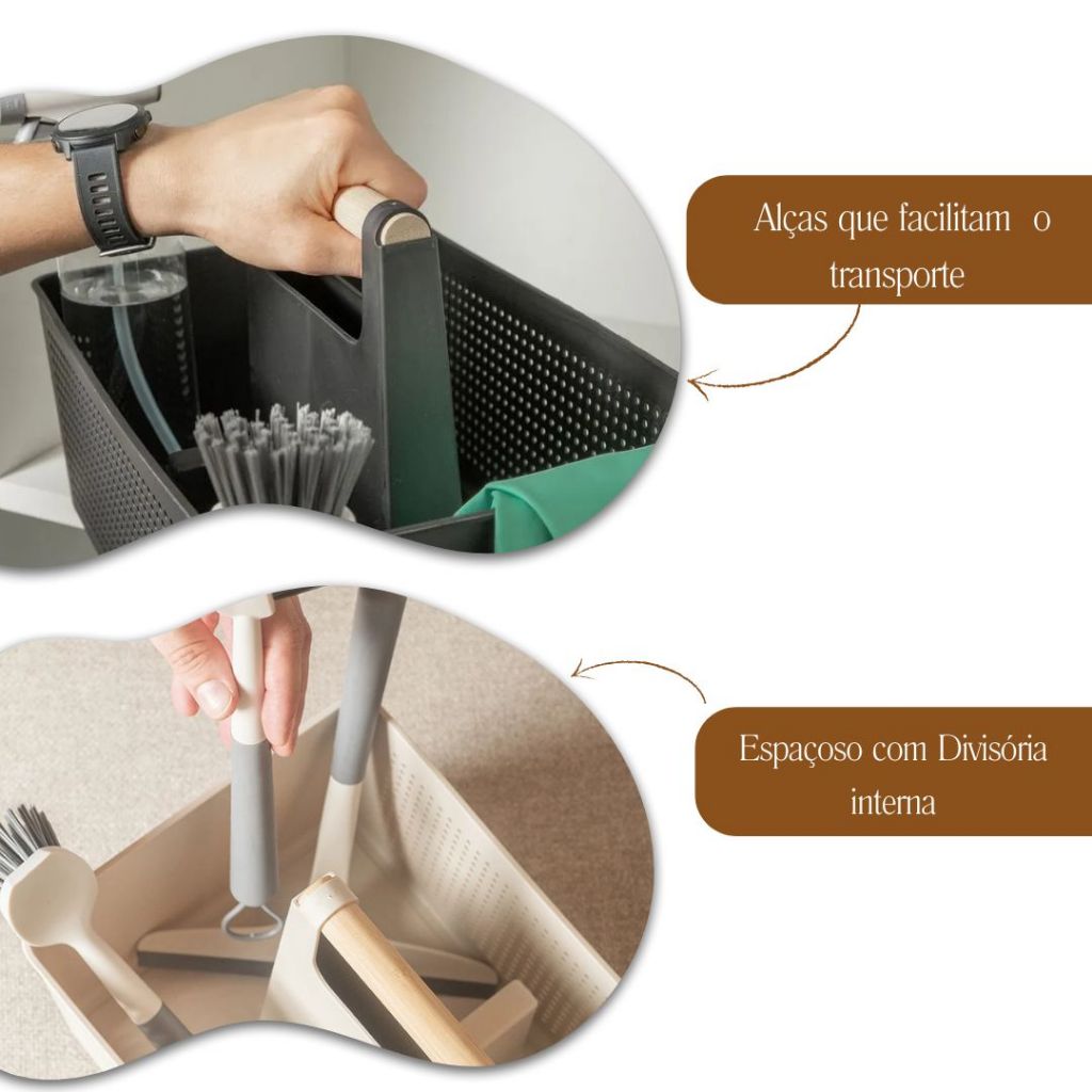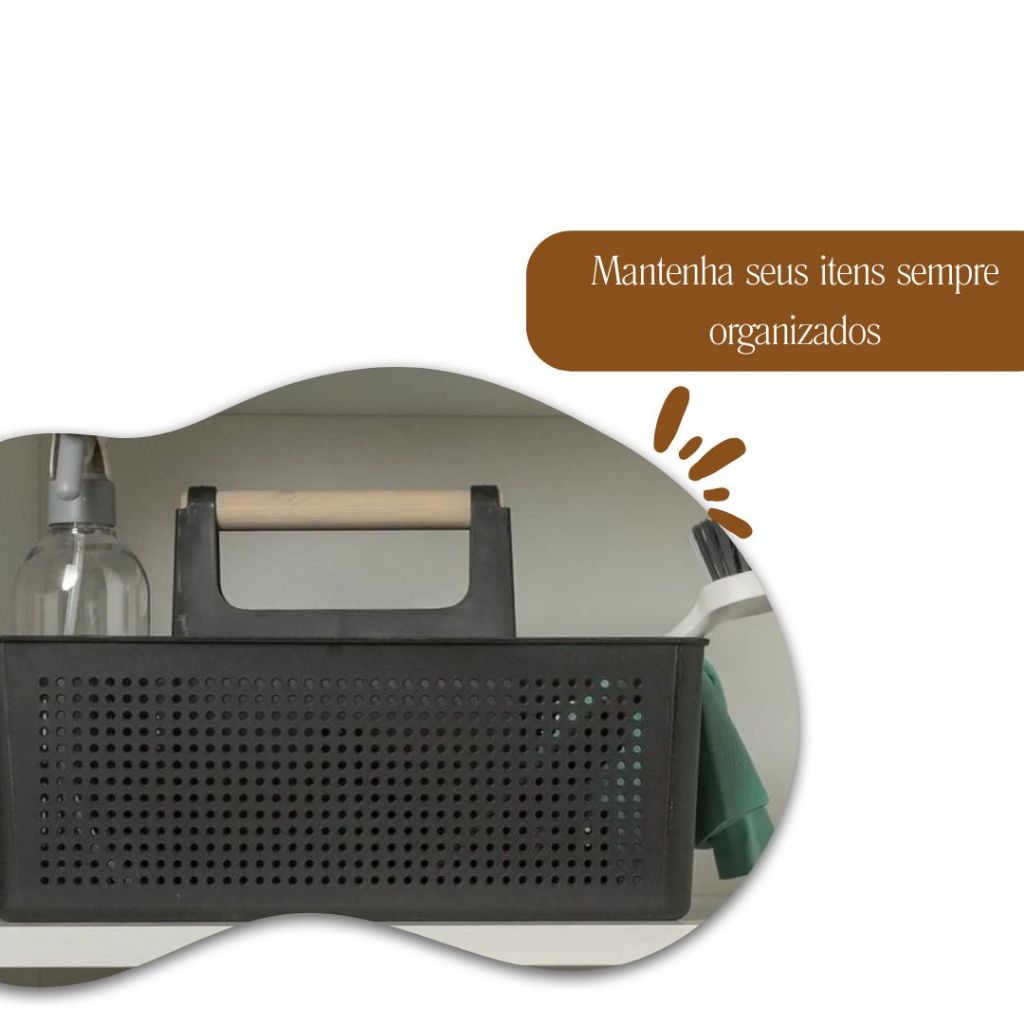 Organizador Multiuso Lavanderia Armazenamento e Transporte de Utensílios de Limpeza Flow Preto