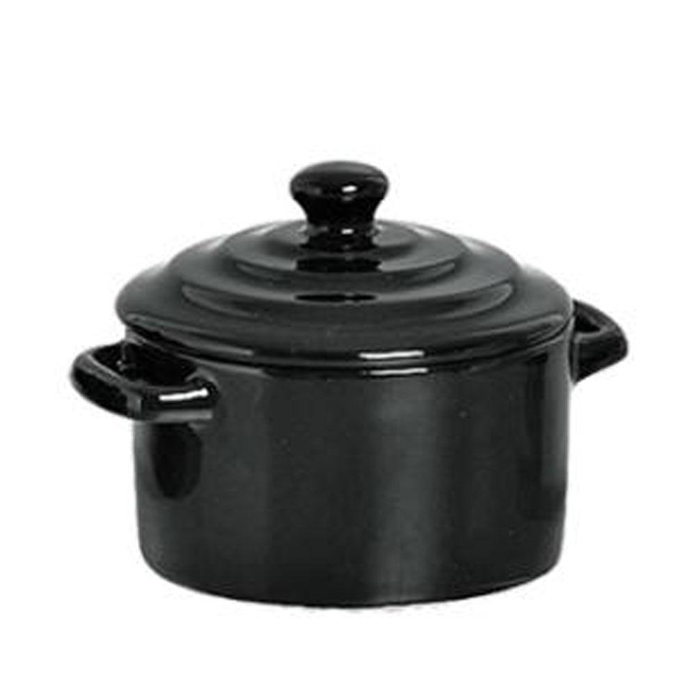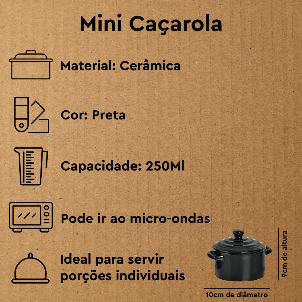 Kit 6 Mini Caçarola Cerâmica Preta Esmaltada 250ml Moderna Panelinha Para Festa Buffet Servir