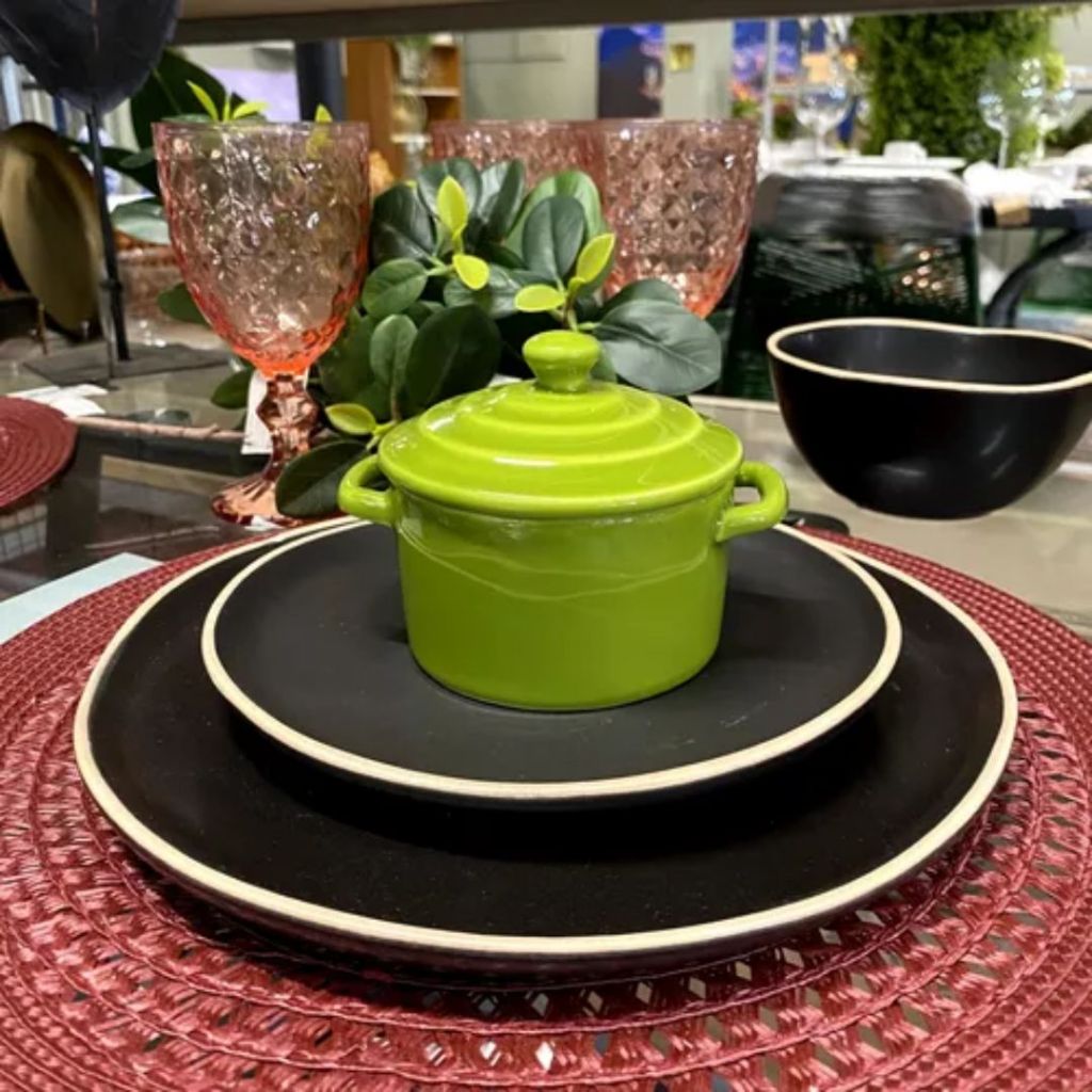 Kit 2 Mini Caçarola Panelinha Molheira Cerâmica Verde Folha