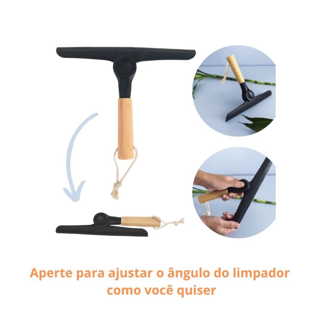 Kit 2 Rodos de Pia Limpa Vidro Articulável Com Cabo de Bambu Multiuso Preto