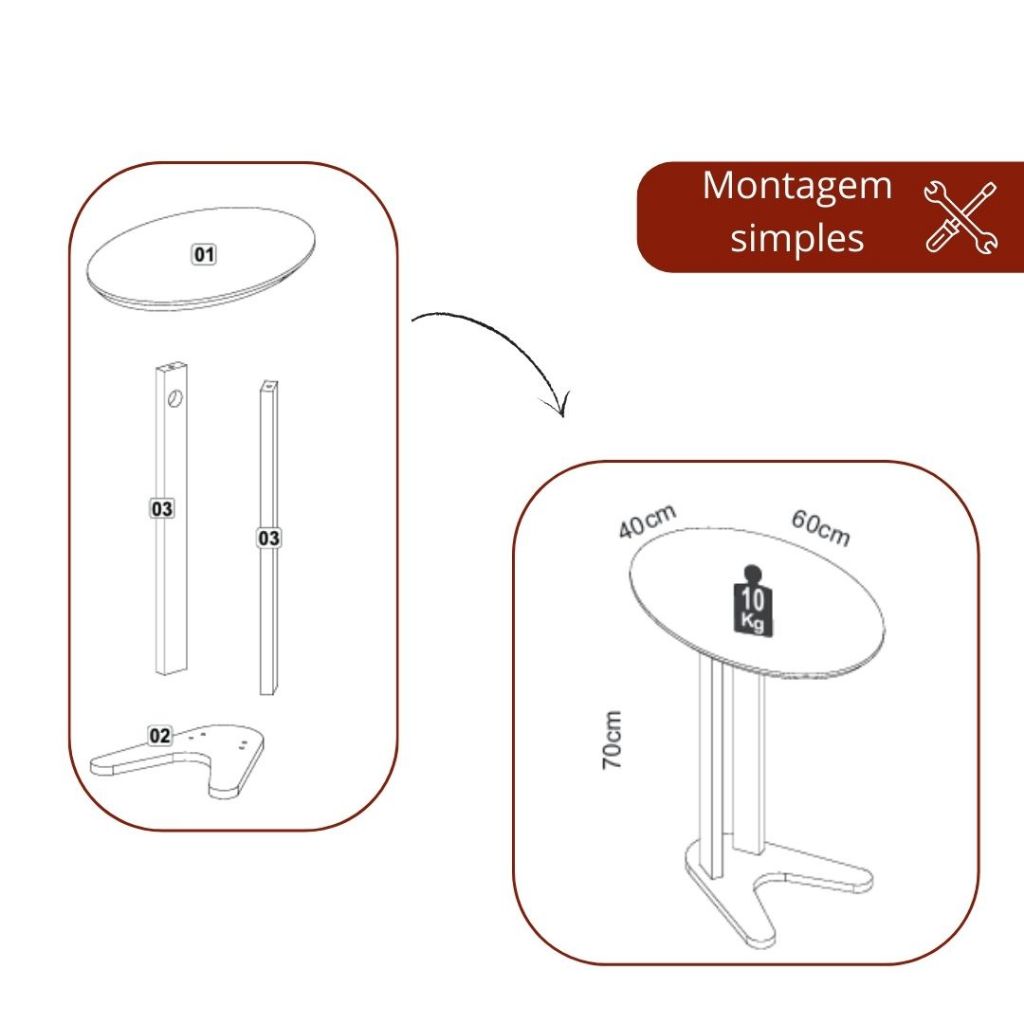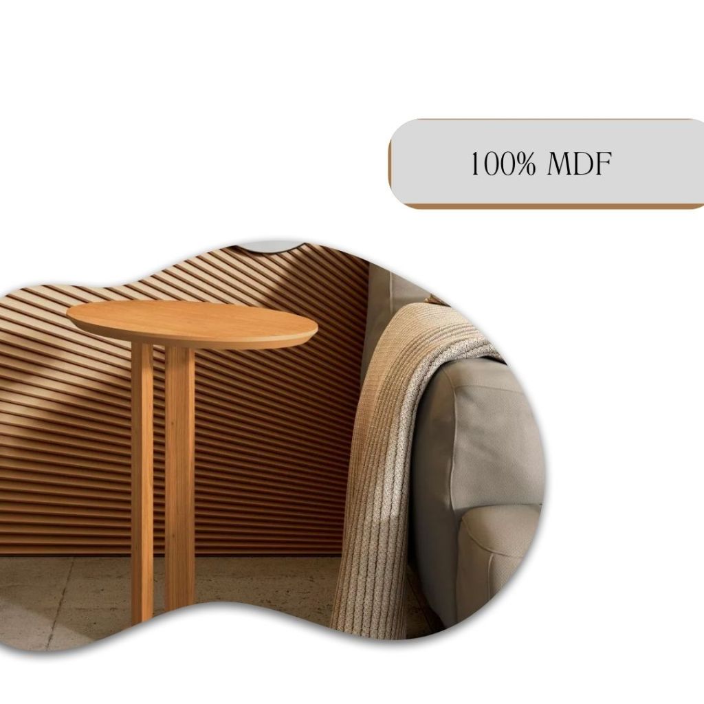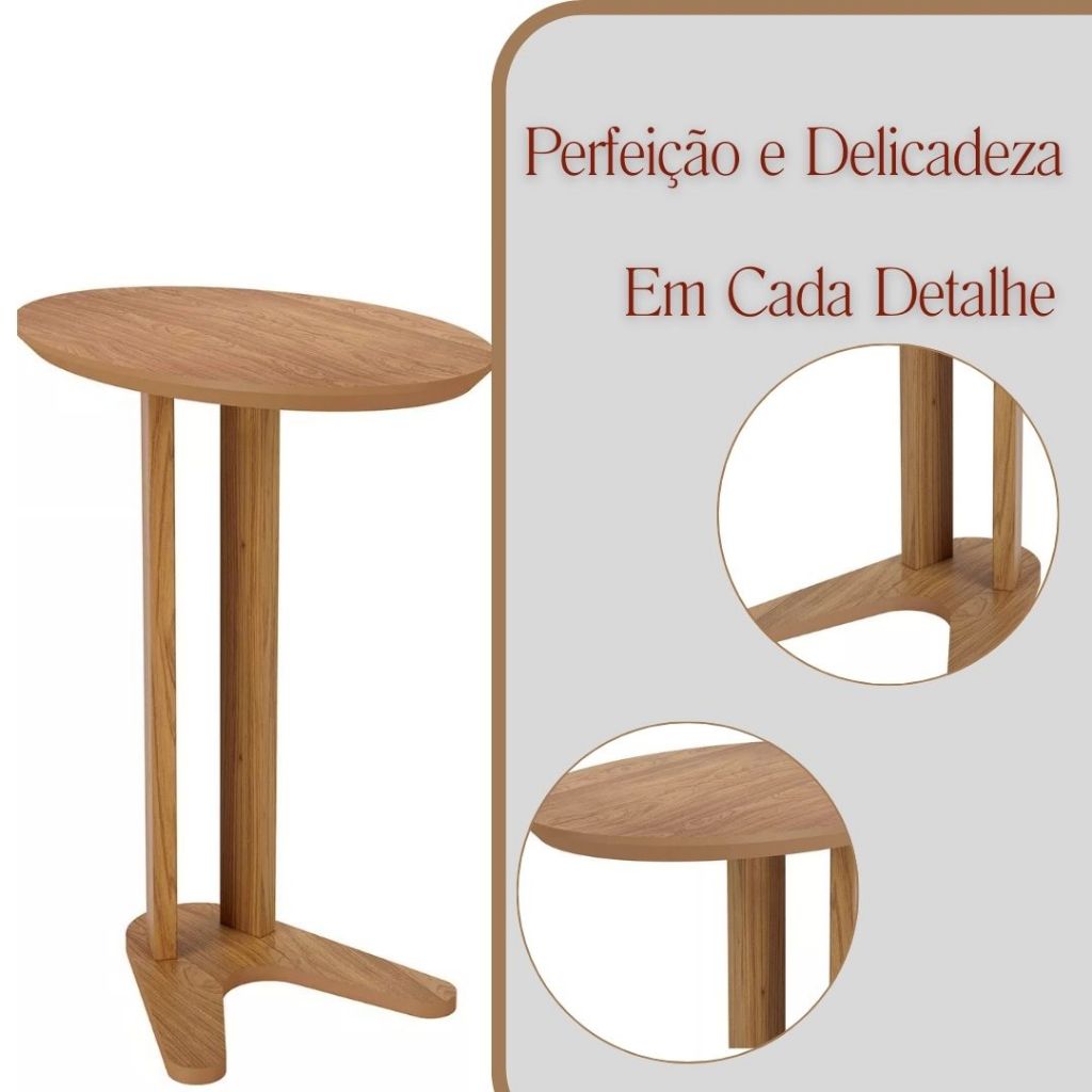 Mesa Auxiliar Lateral para Sofá 60cm 100% MDF Oval Organico Decoração Elegante