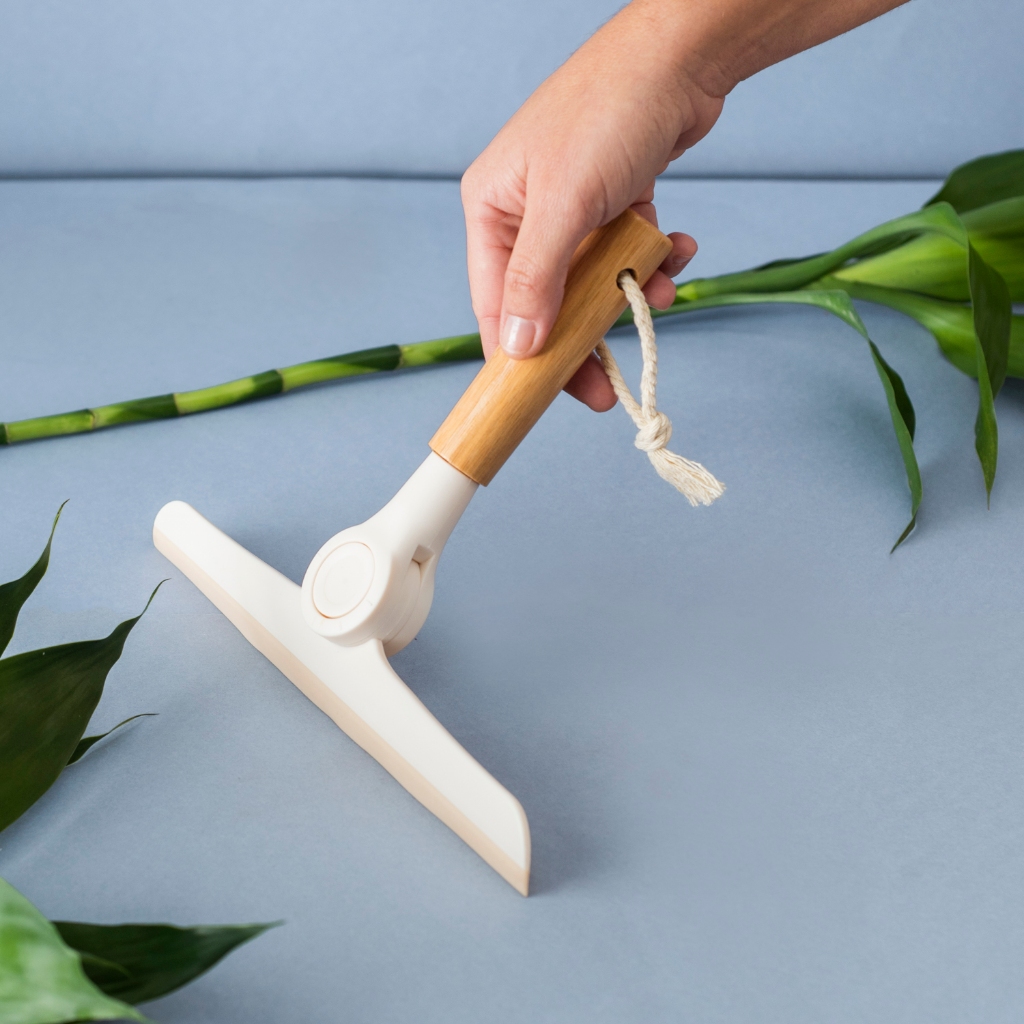 Rodo de Pia Dobrável com Cabo de Bambu Oikos Rodinho Off White Bege