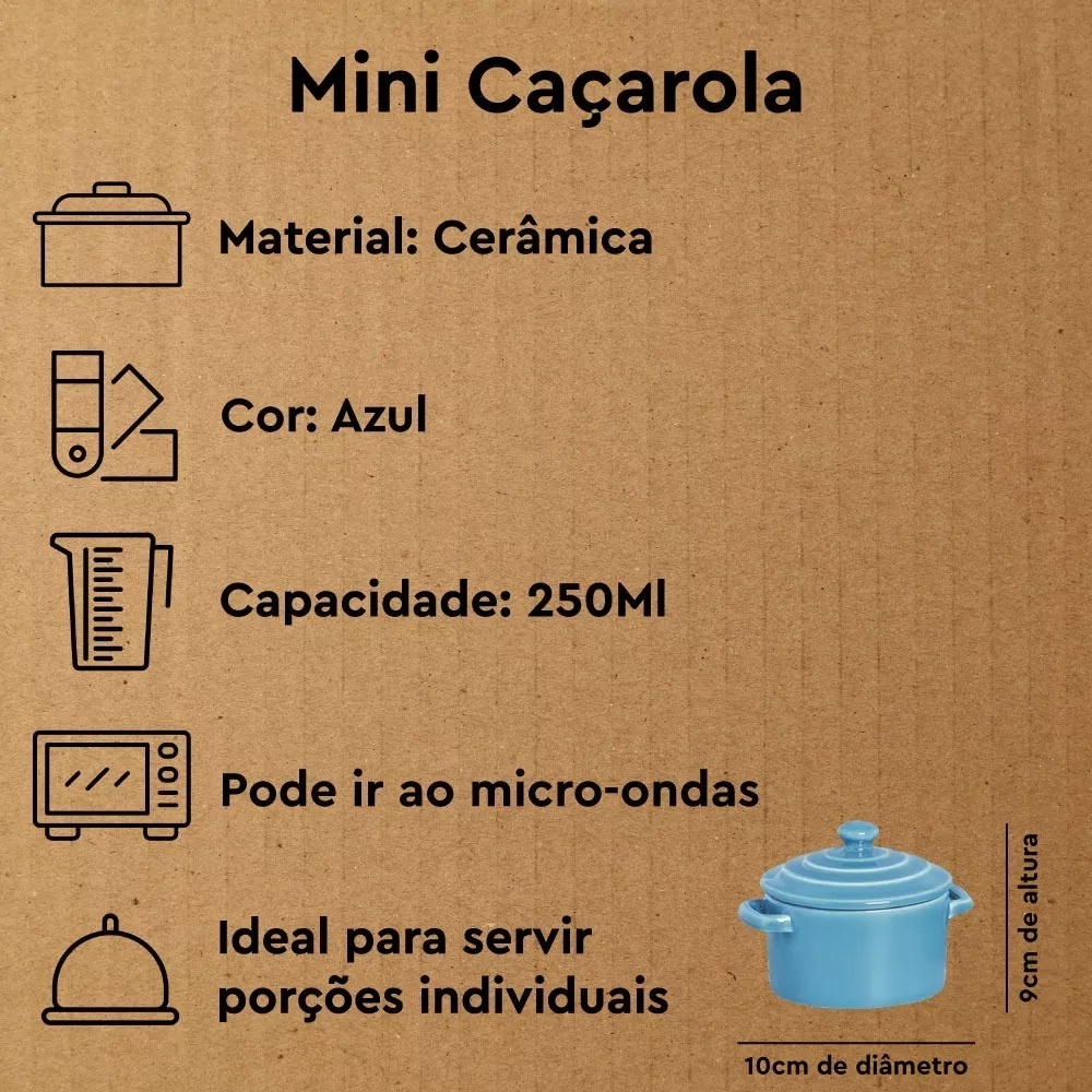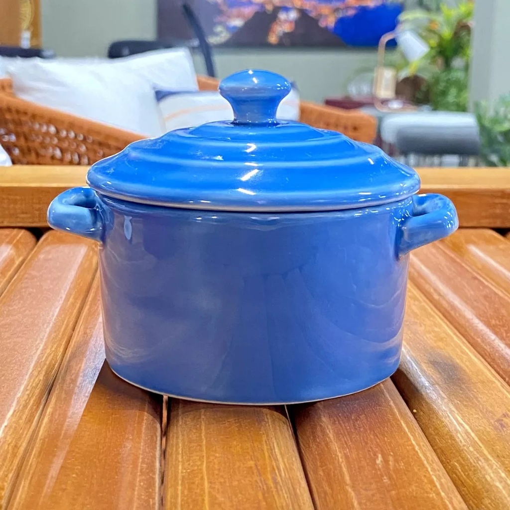 Kit 2 Mini Caçarola Cerâmica Azul Esmaltada 250ml Moderna Panelinha Para Festa Buffet Servir