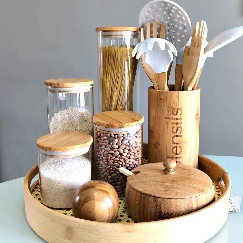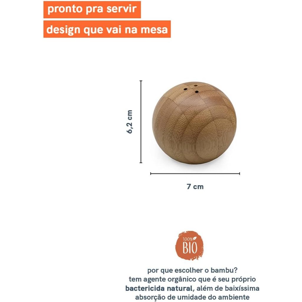 Saleiro Esférico Redondo de Cozinha Bambu Oikos Porta Tempero