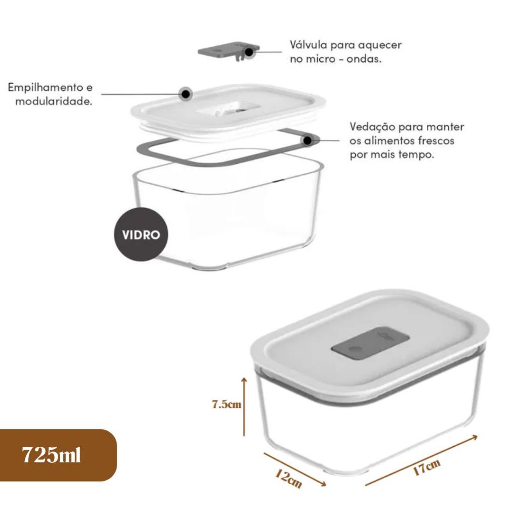 Pote de Vidro Hermético 725ml Branco com valvula Multiuso Resistente Seguro Prático