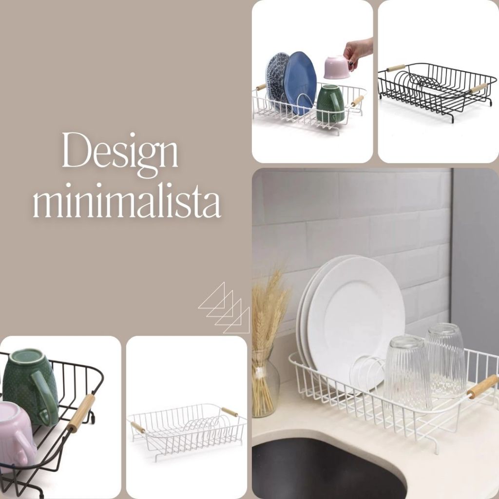 Escorredor de Pratos Preto Em Ferro e Madeira Design Moderno Funcional