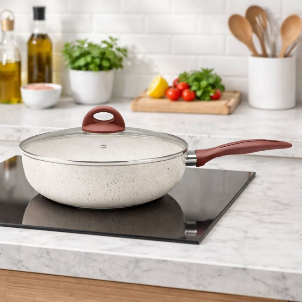 Frigideira Wok Indução Antiaderente 28cm 3,4L Brinox Cor Vanilla