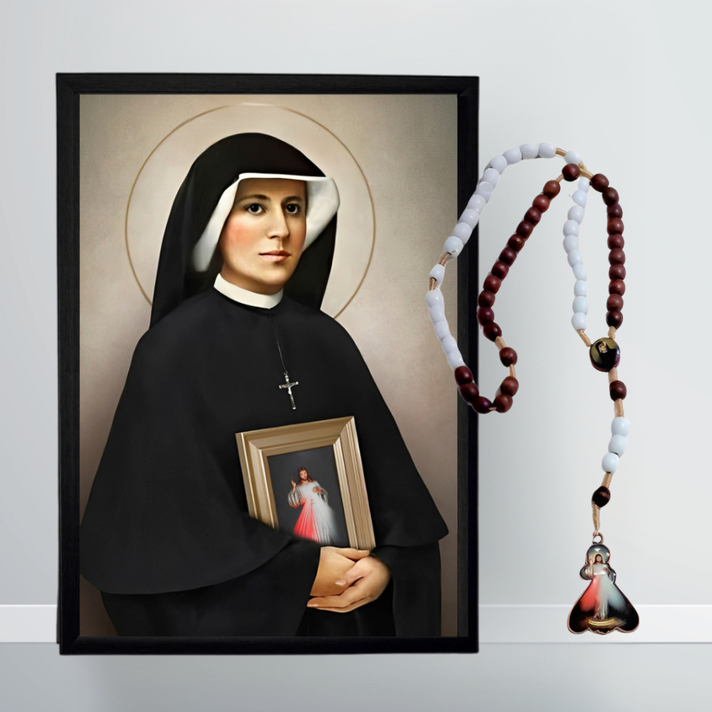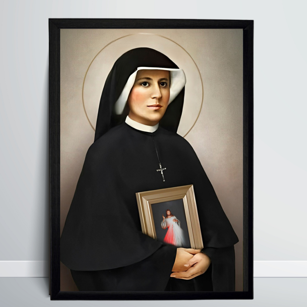 Quadro Santa Faustina Devoção Festa da Misericórdia Com Moldura 32x23cm