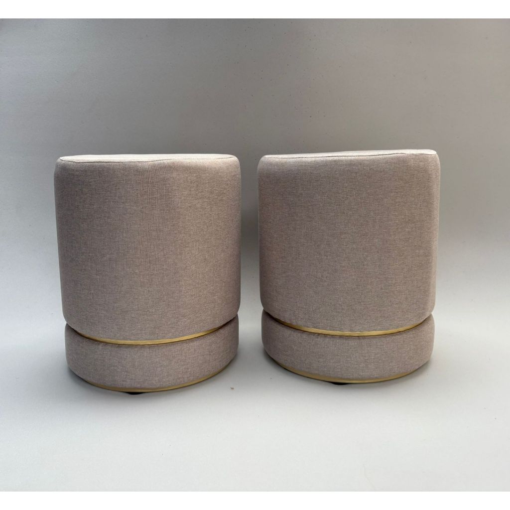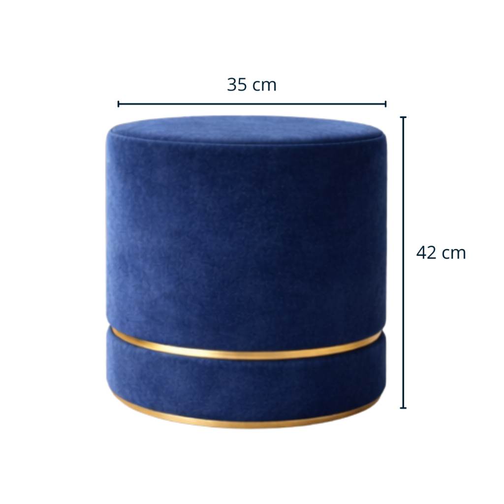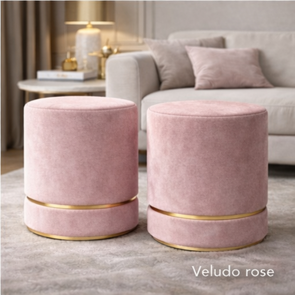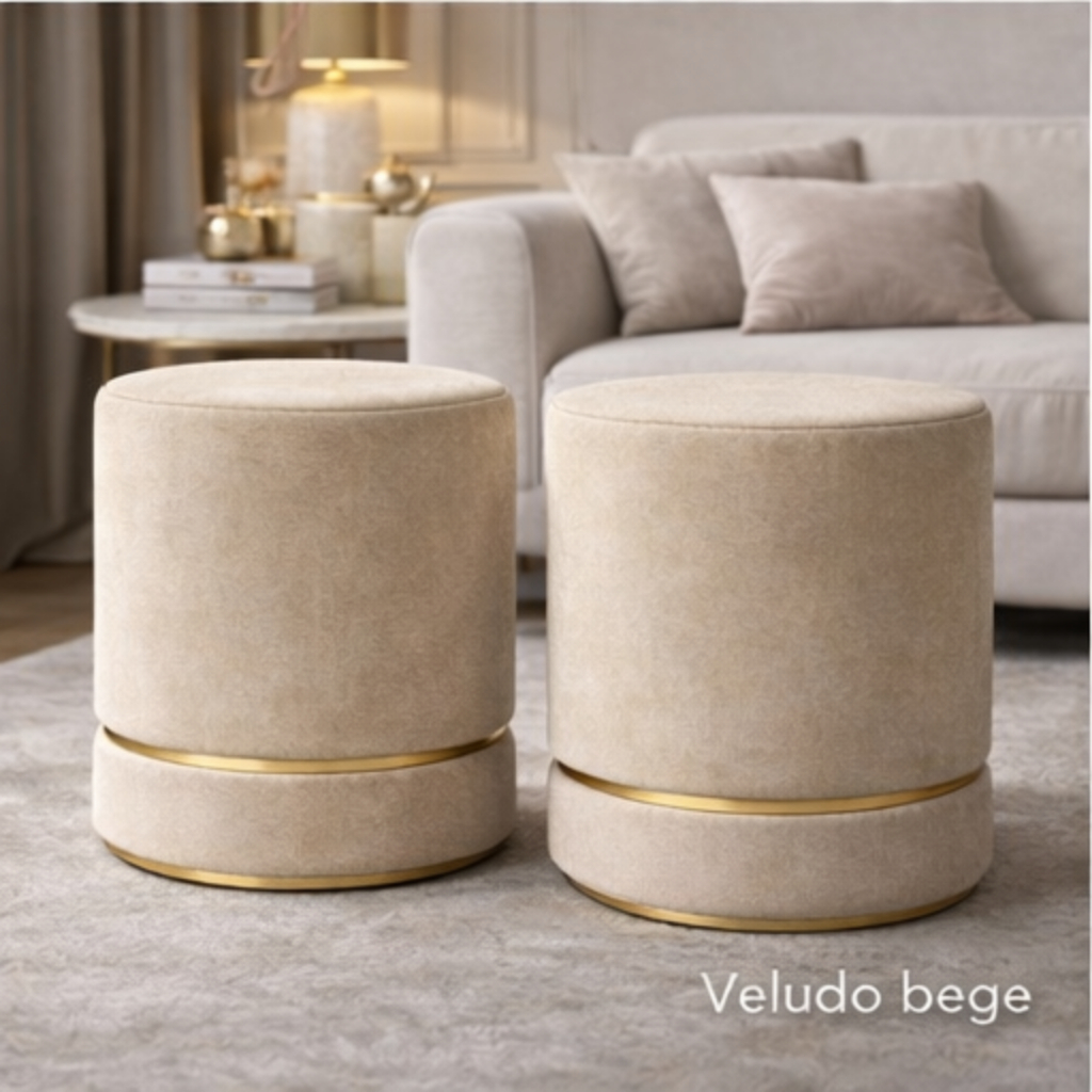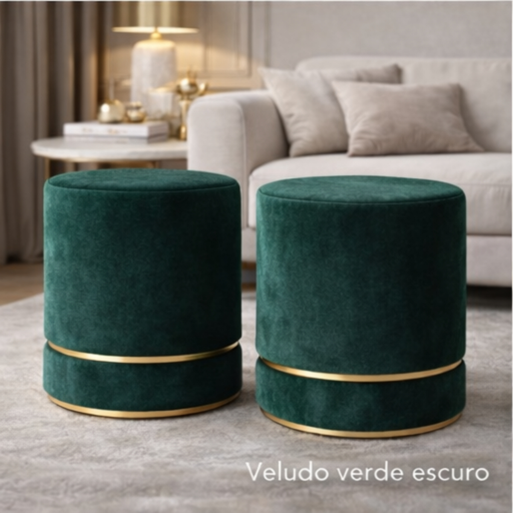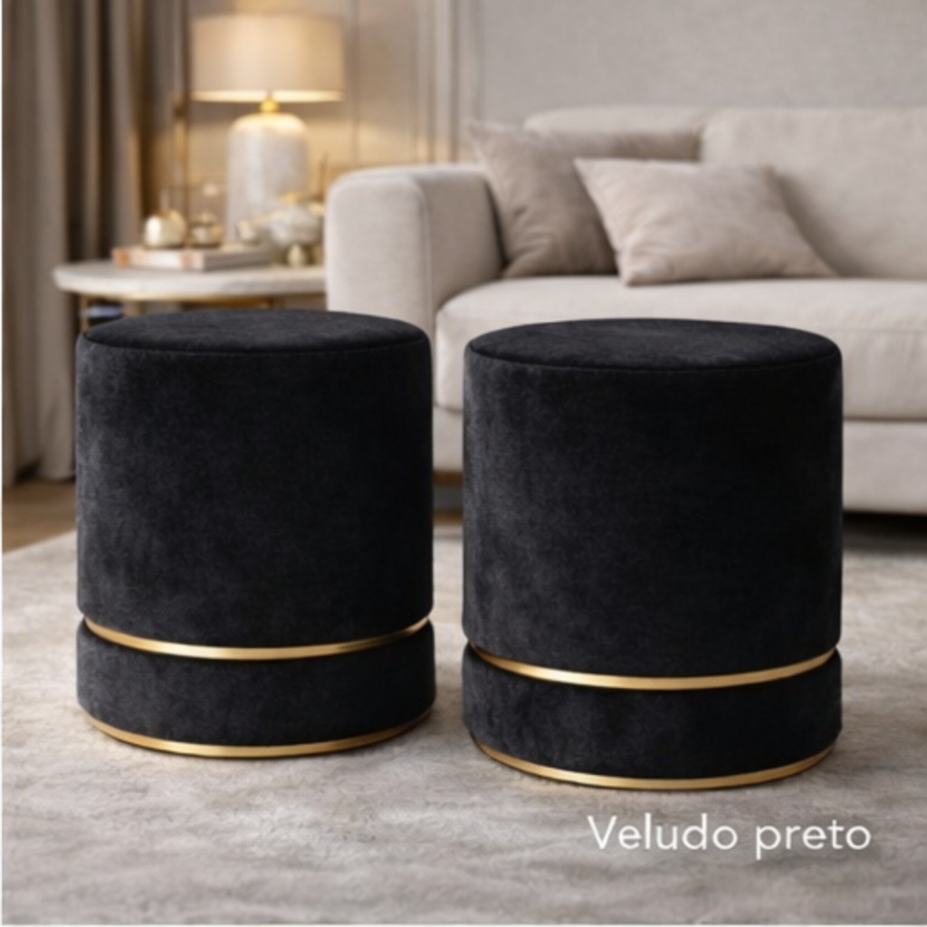 Kit 2 Puff Decorativo Redondo 42cm Suede ou Linho com Cinta Dourada – Puff Sala Quarto Moderno Reforçado