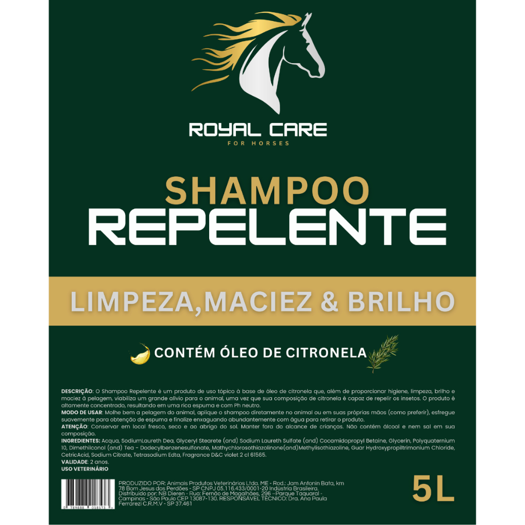 Shampoo Repelente Citronela 5l Para Cavalo Royalcare