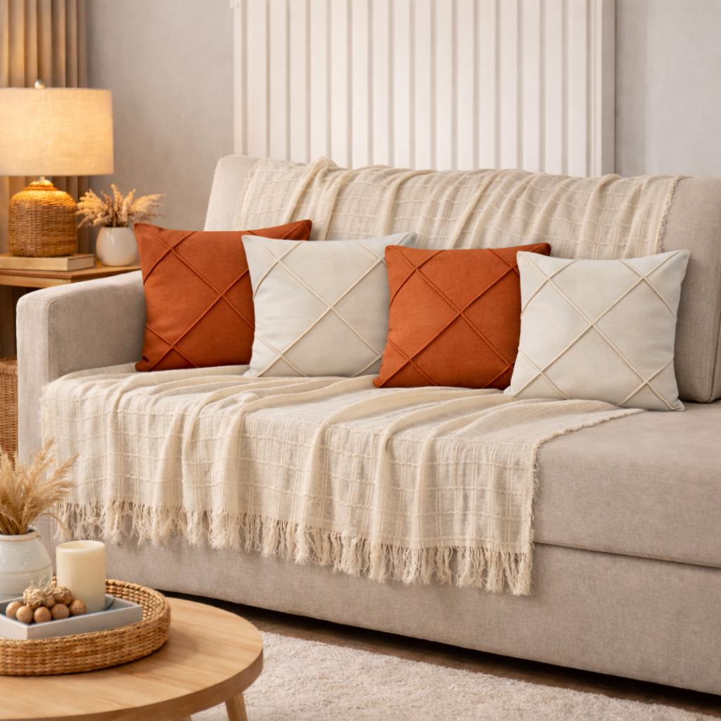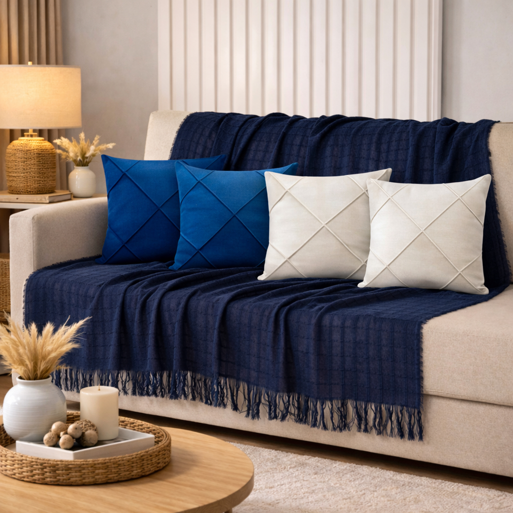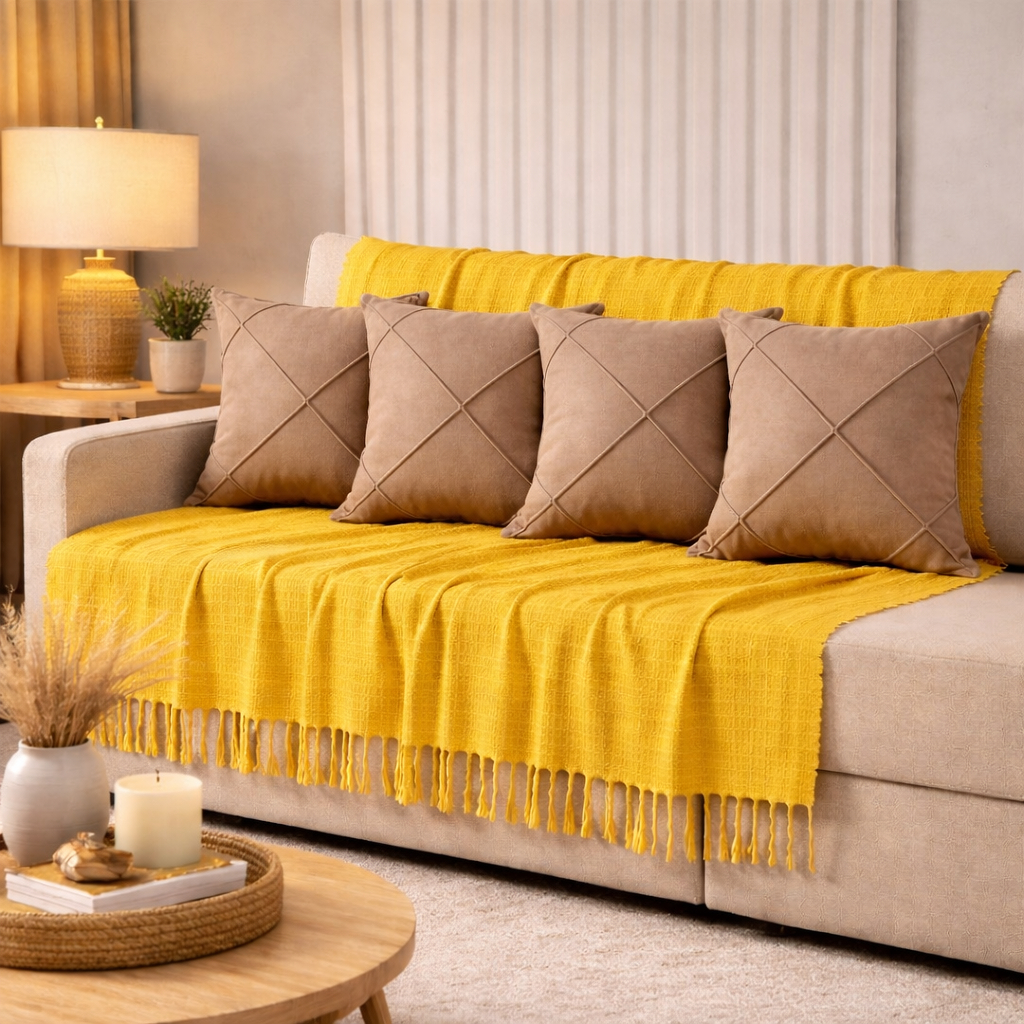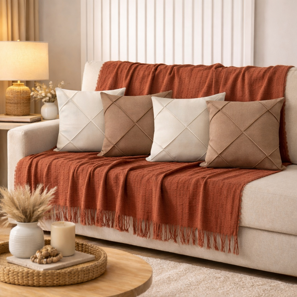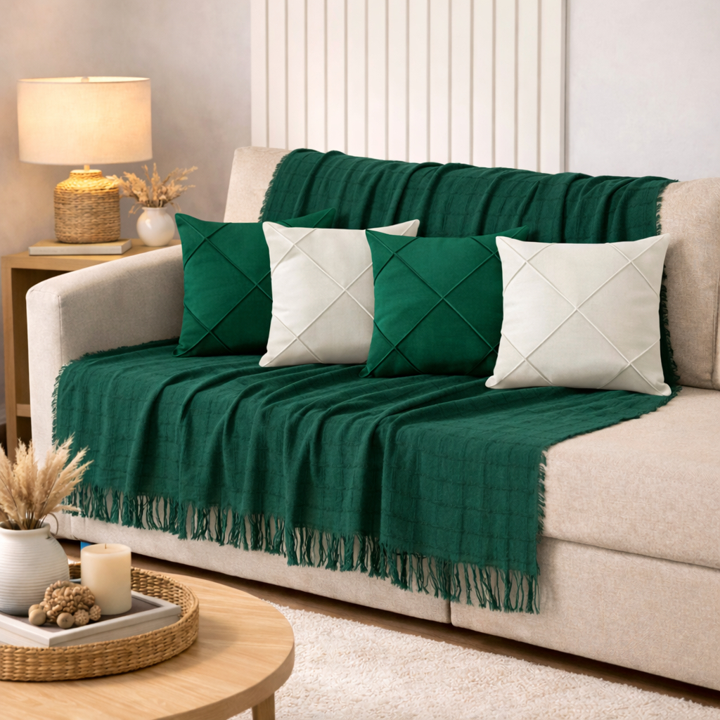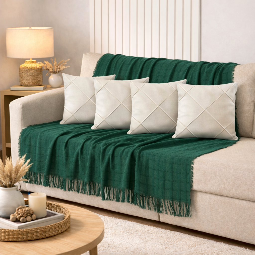 Kit Manta + Capas de Almofada Sued Drapeada Decoração Sala Sofá Manta P 1,40 x 1,70m