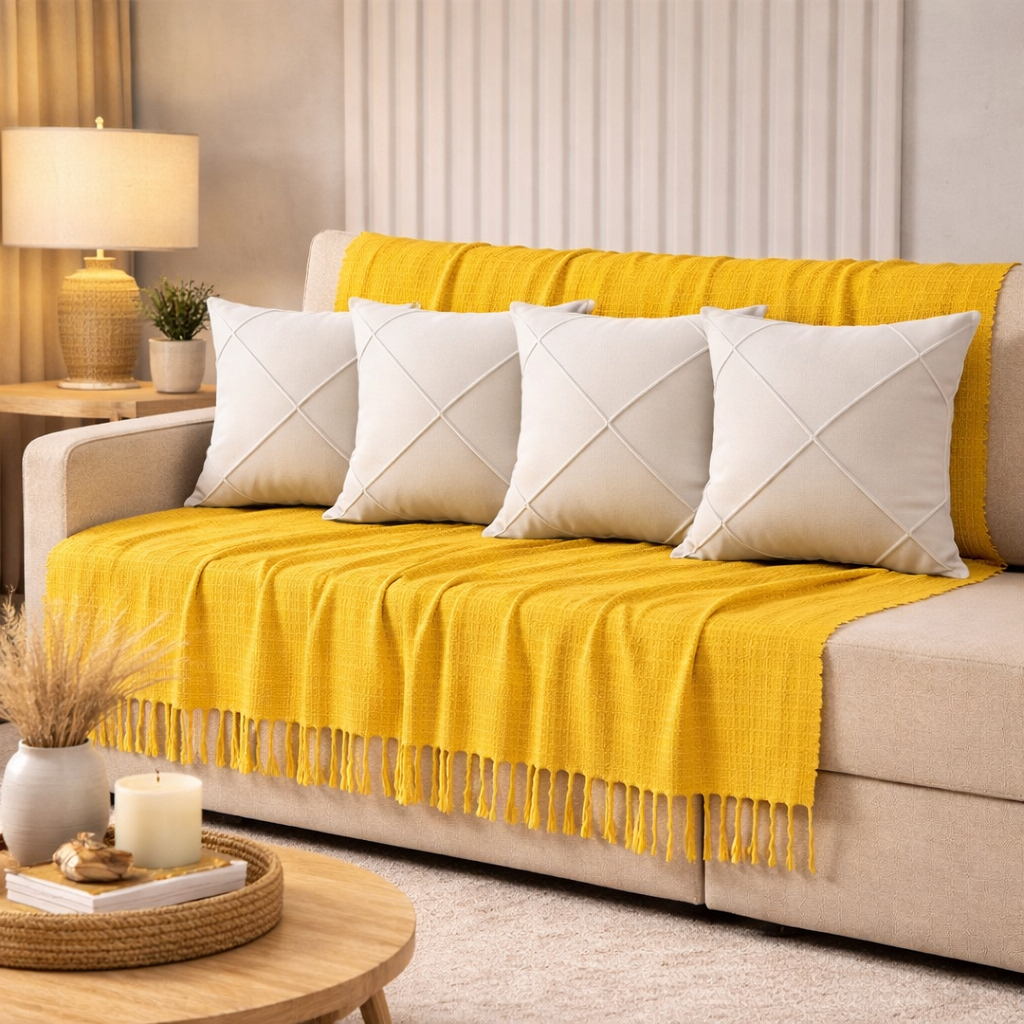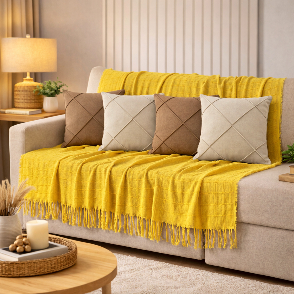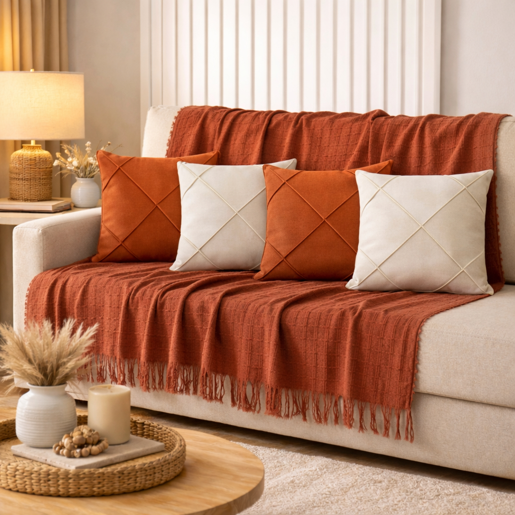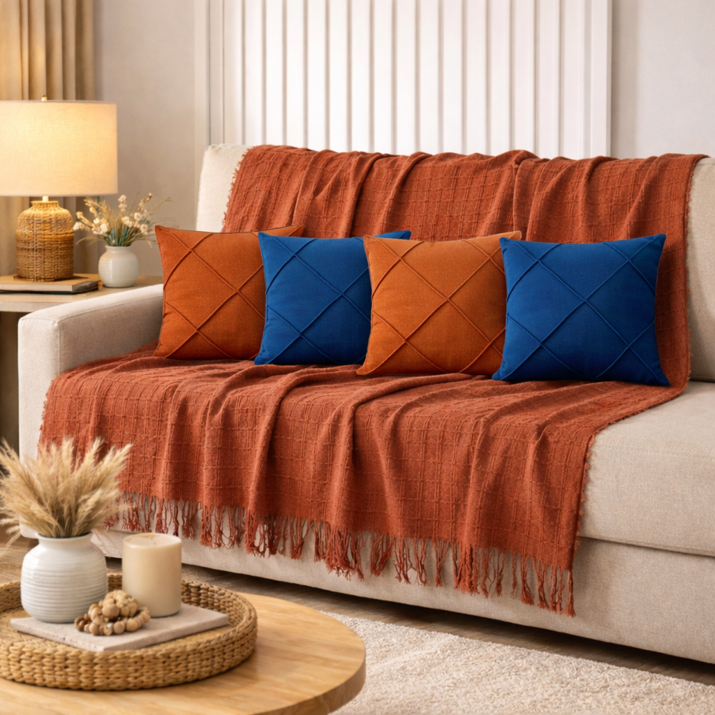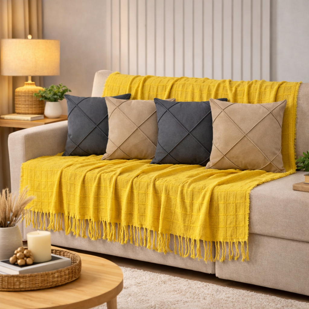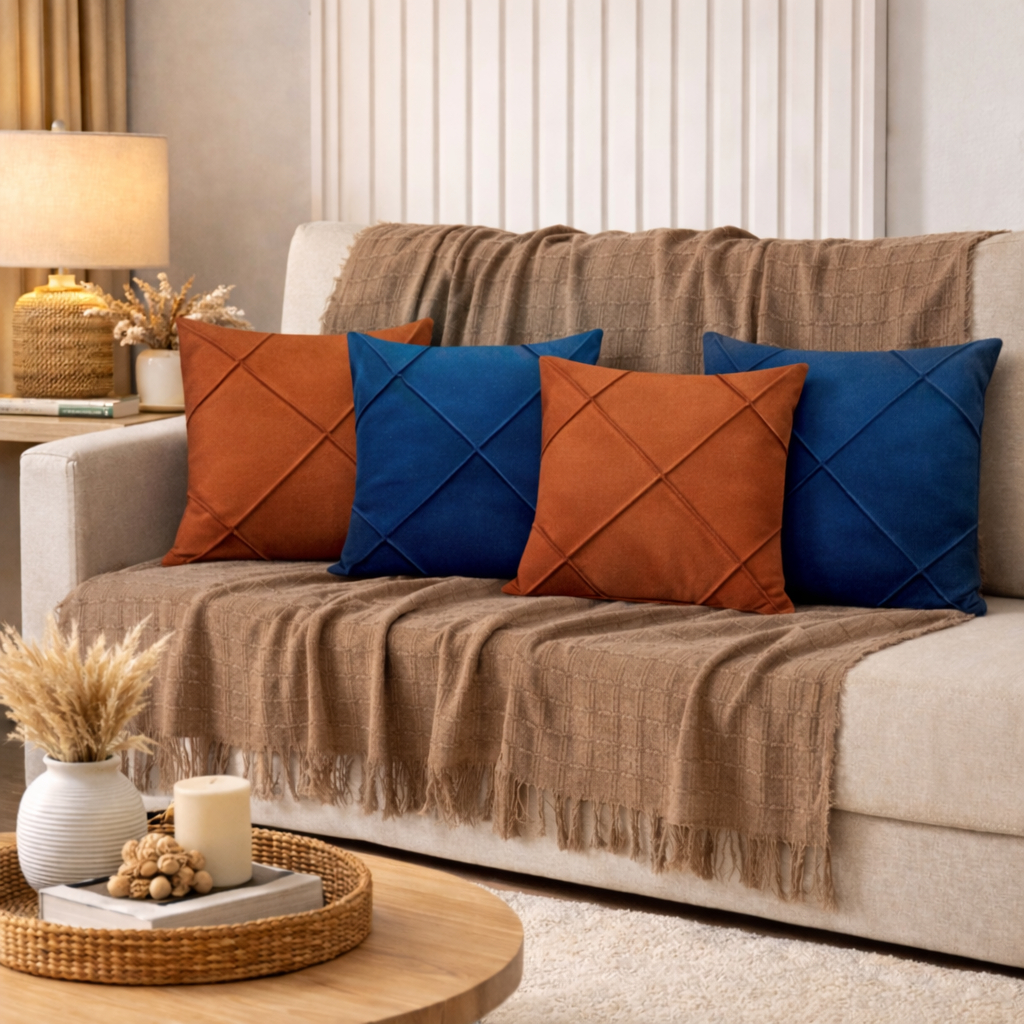 Kit Manta + Capas de Almofada Sued Drapeada Decoração Sala Sofá Manta P 1,40 x 1,70m