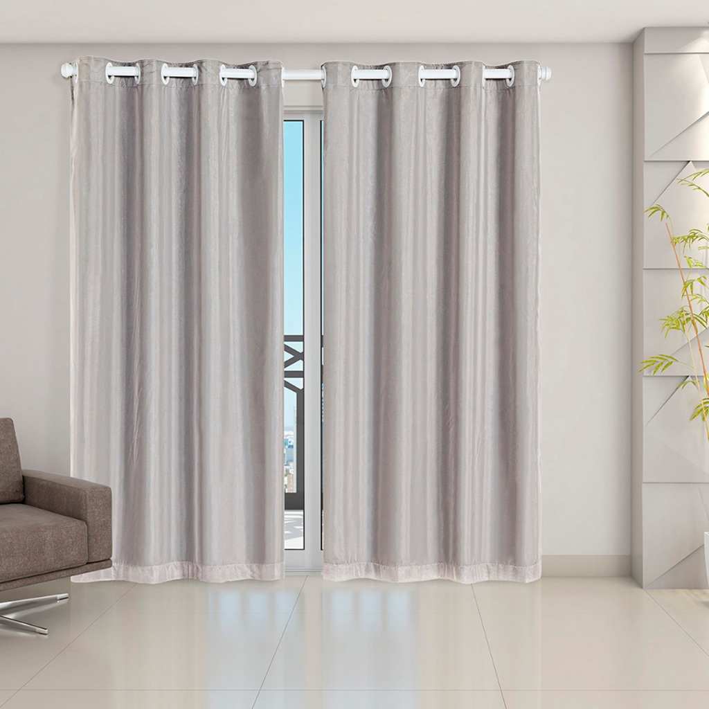Cortina Blackout PVC Cinza com Voil Liso Bloqueia Luz