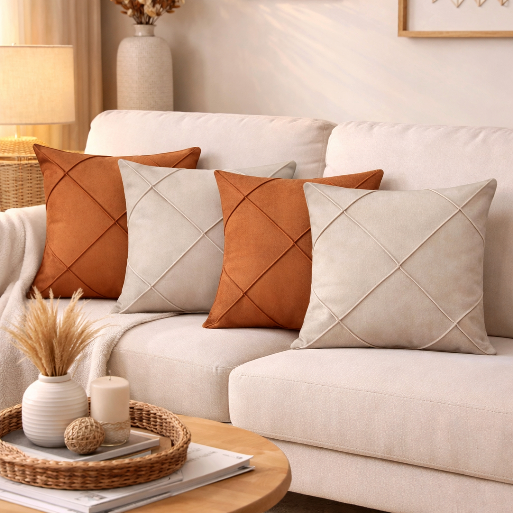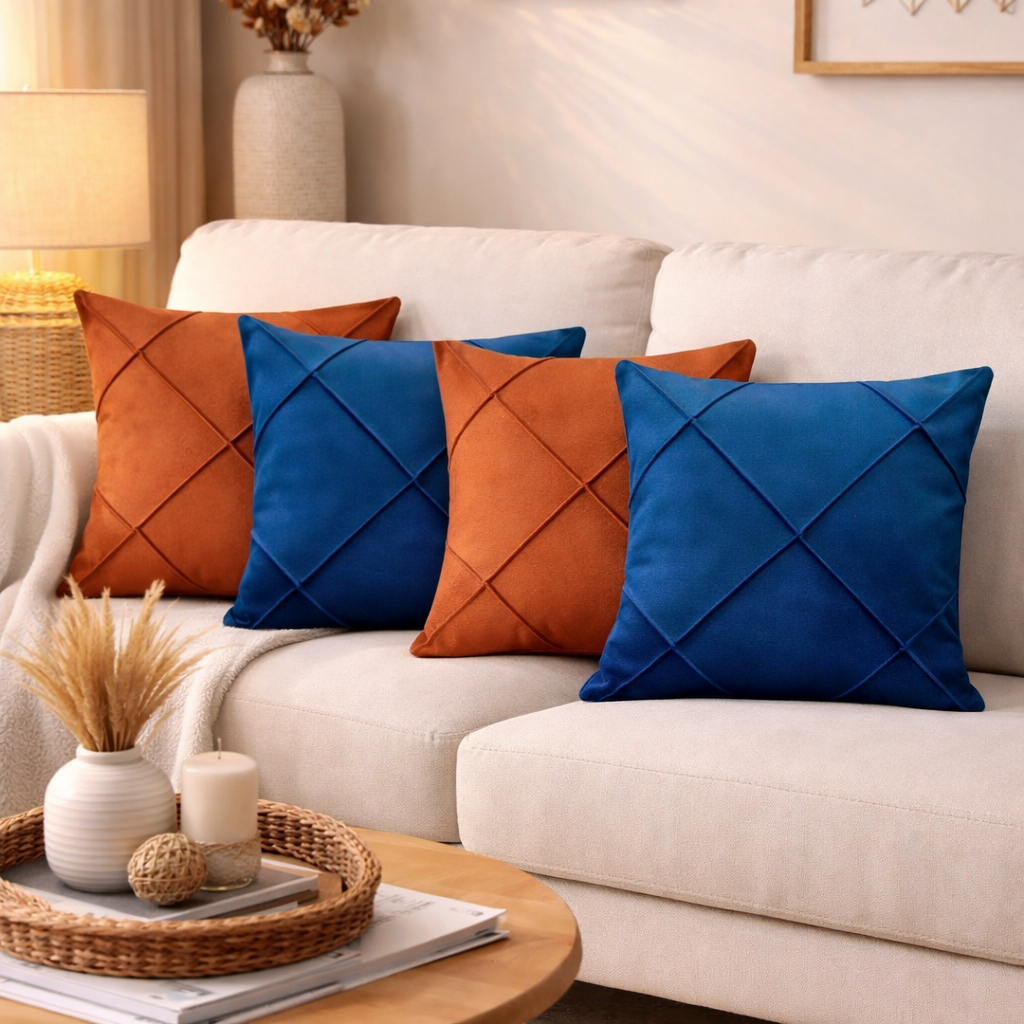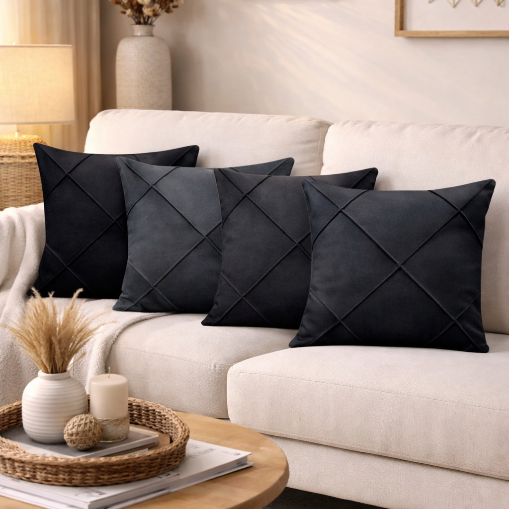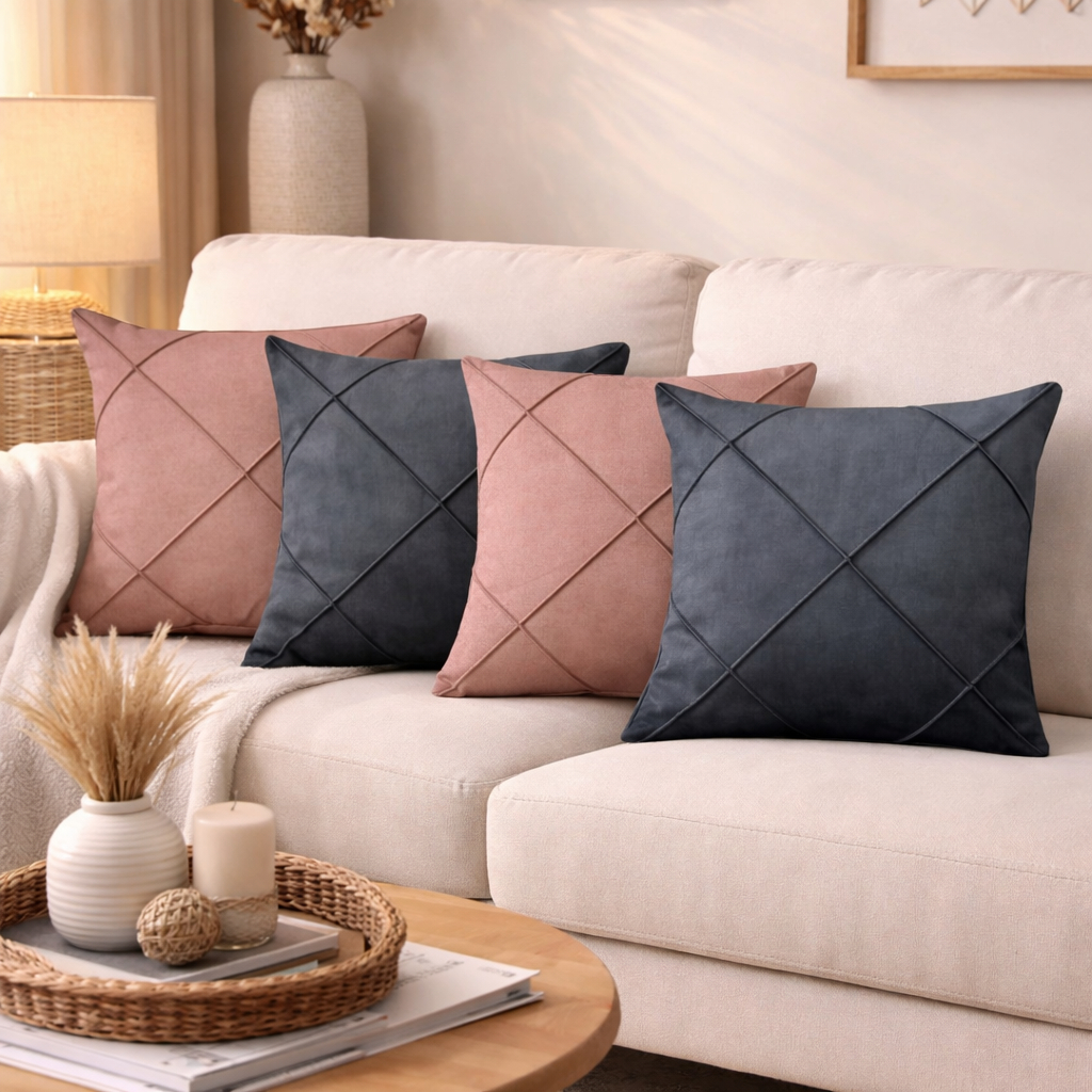 Kit 4 Capas de Almofada Suede Drapeada 43x43 cm Decorativas