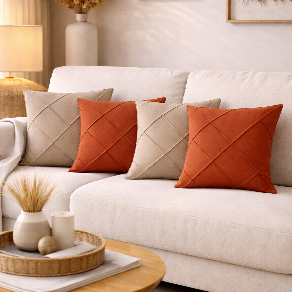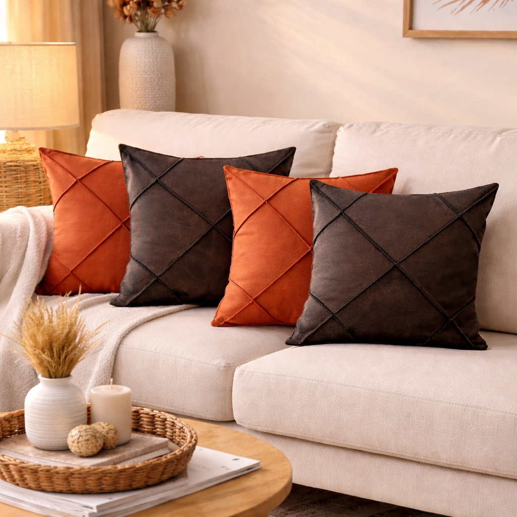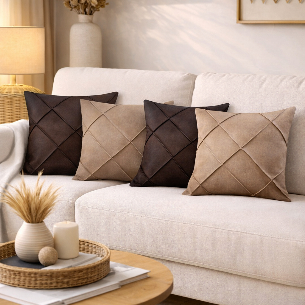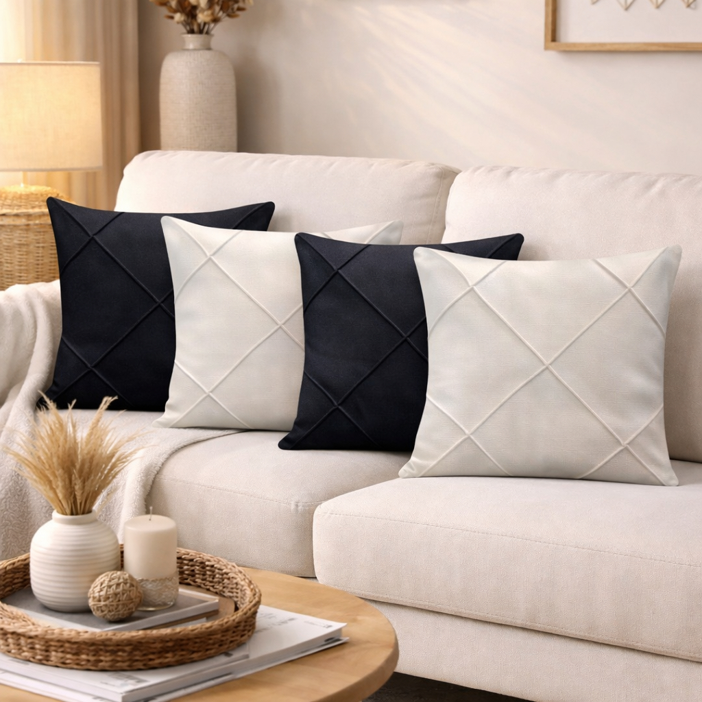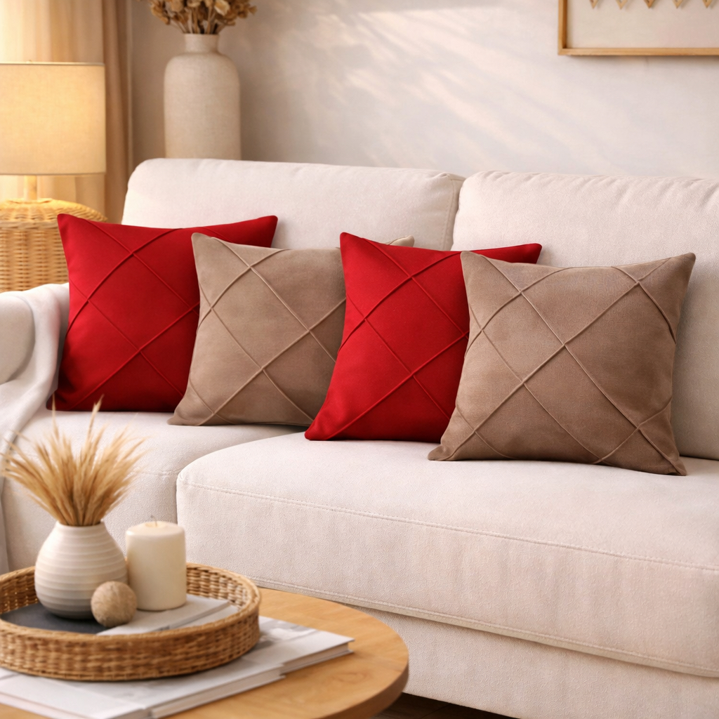 Kit 4 Capas de Almofada Suede Drapeada 43x43 cm Decorativas