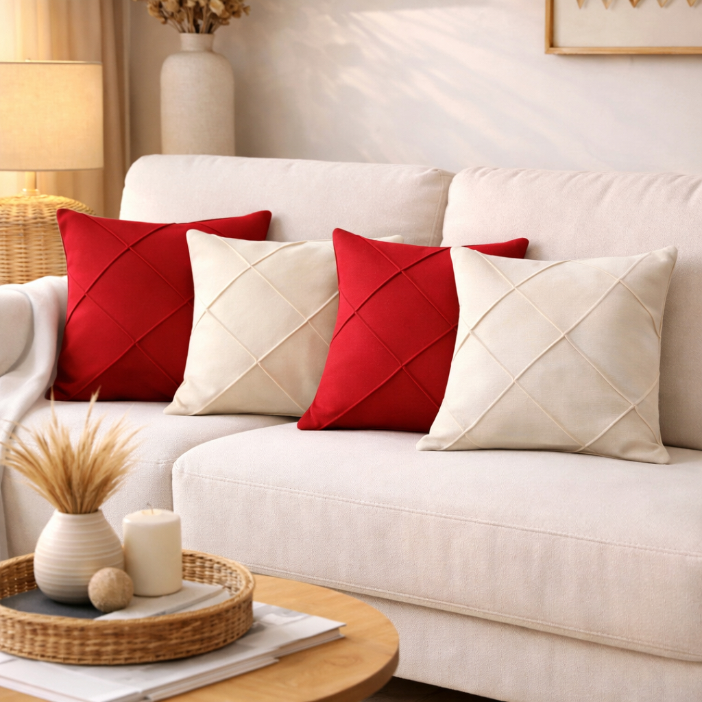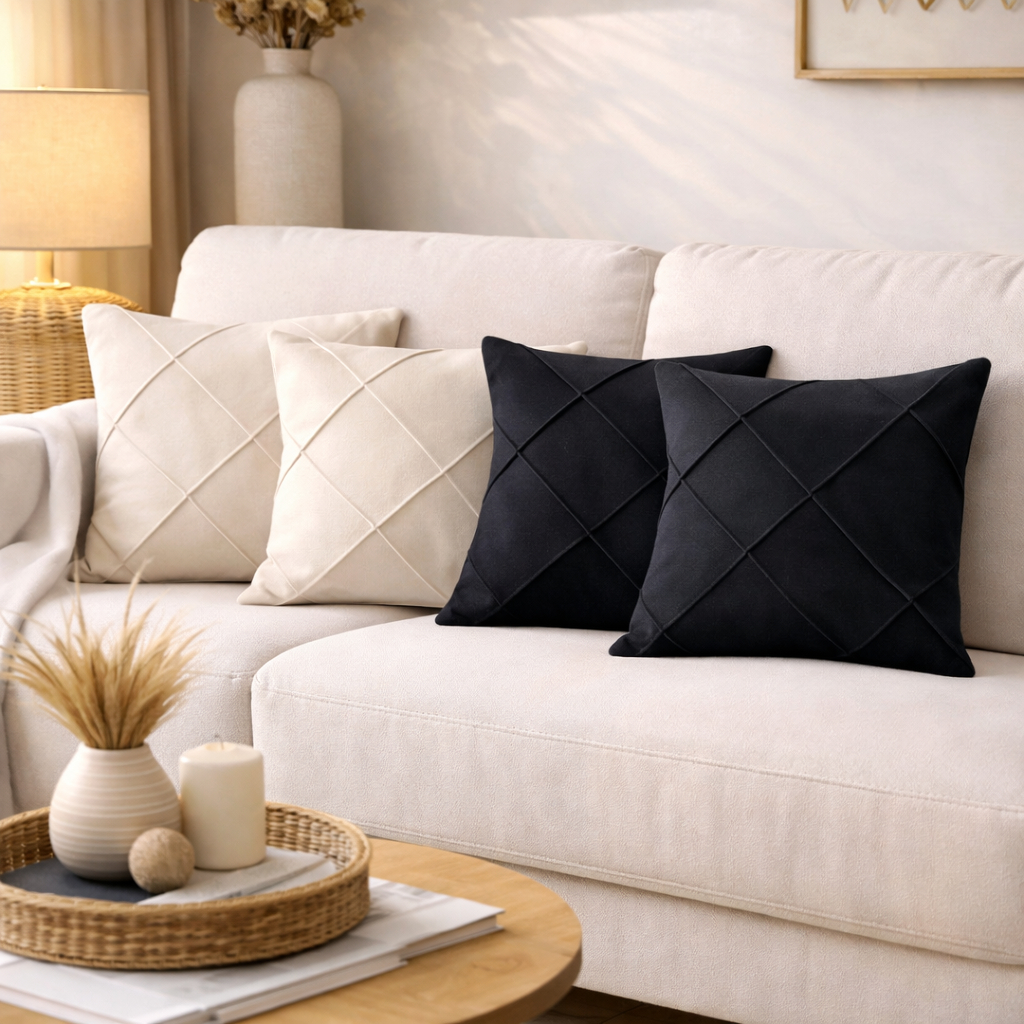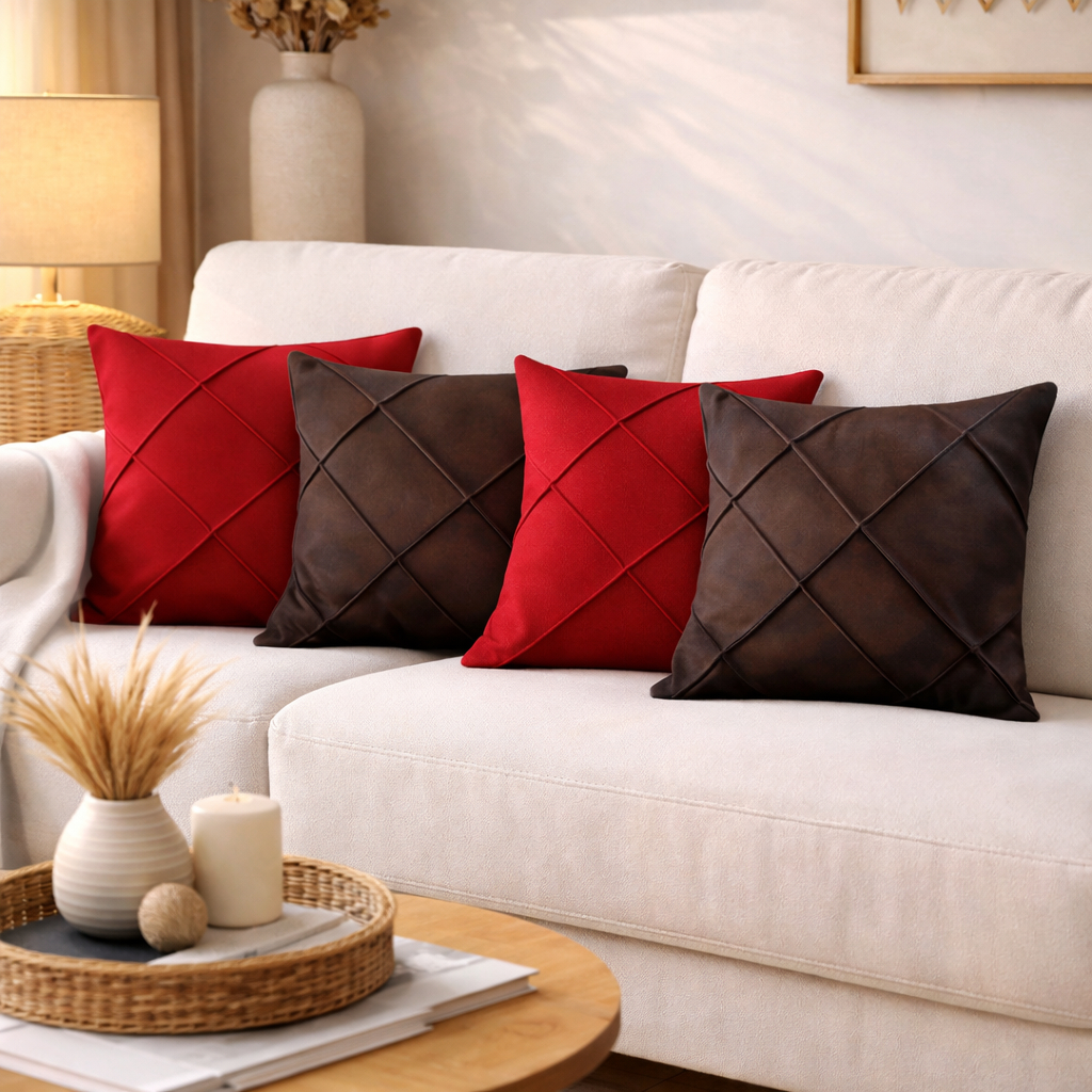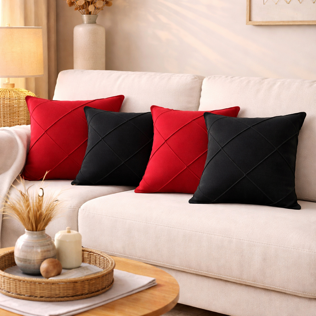 Kit 4 Capas de Almofada Suede Drapeada 43x43 cm Decorativas