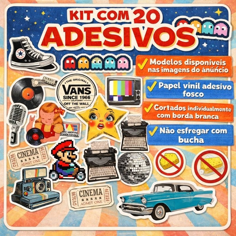 20 Adesivos Retrô Anos 90 Vintage A Prova D'água Stickers para Notebook Caderno Kindle Garrafa Decoração