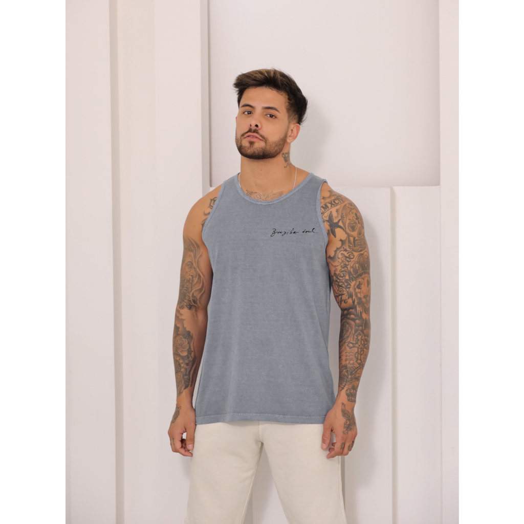 Regata cavada normal estampada masculina estonada verão com costura malha lavada