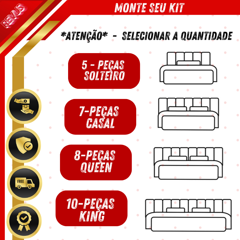 Kit Com Até 10 Placas de Cabeceira Modular Estofada 45X20 cm Cama King Queen Casal Solteiro Envio Full