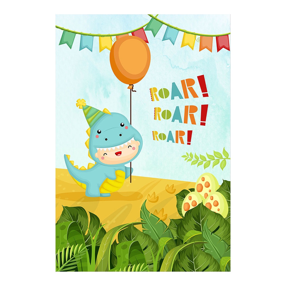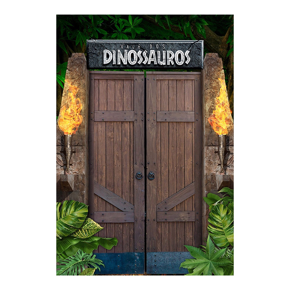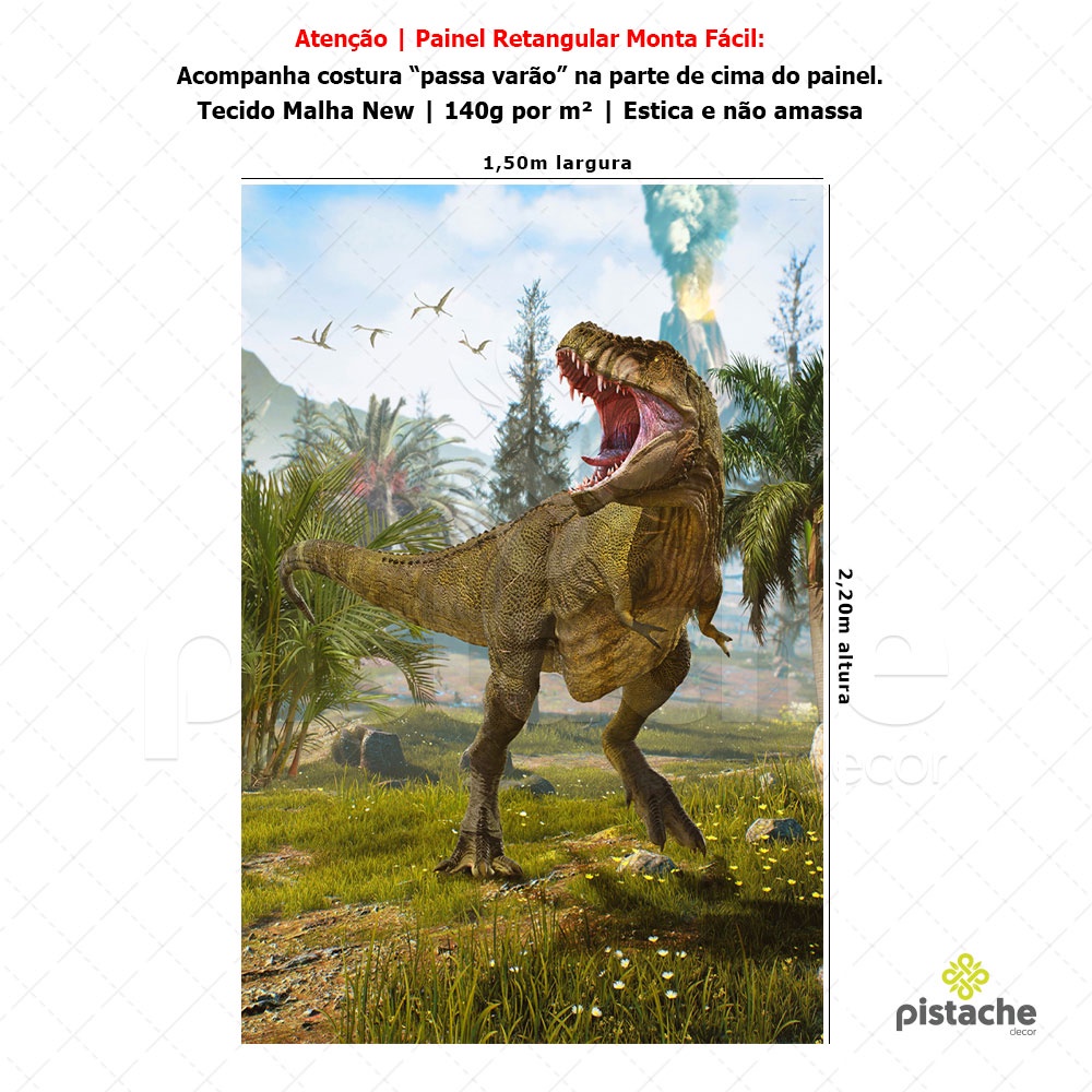 Painel Retangular Festa Dinossauro Decorativo Vertical Lateral Sublimado Em Tecido 1,50x2,20m