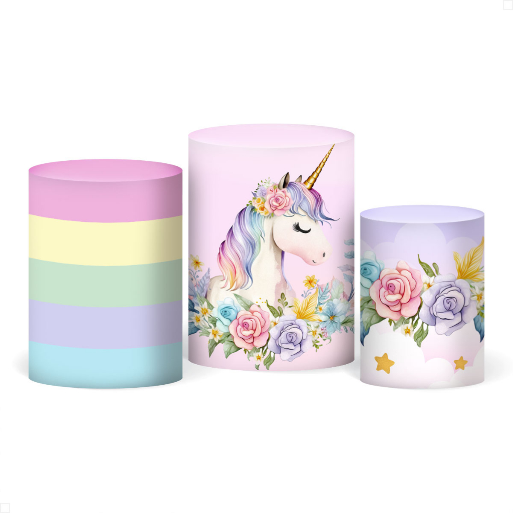 Capa de Cilindro Festa Unicórnio Veste Fácil Em Tecido Com Elástico Decoração - Diversos Modelos
