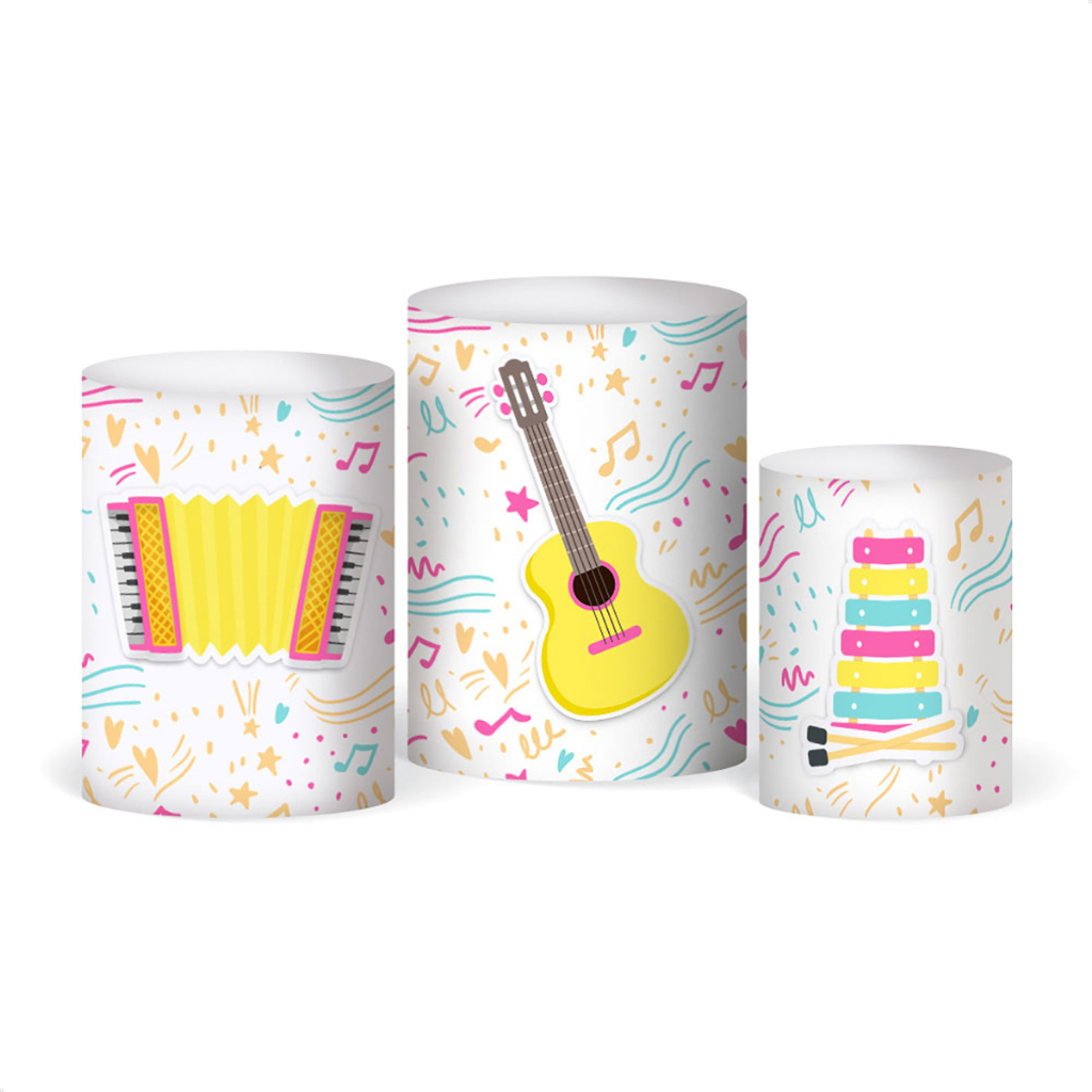 Capa Cilindro Festa Música Veste Fácil em Tecido com Elástico Decorativo