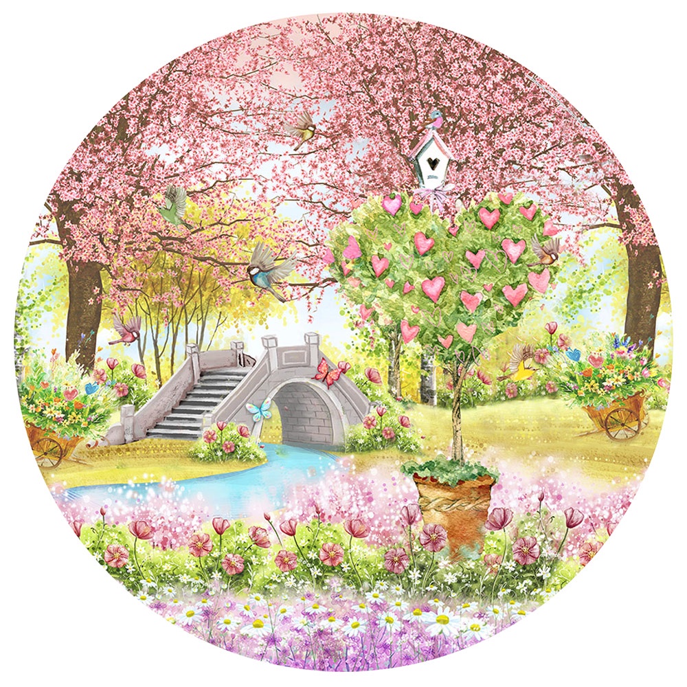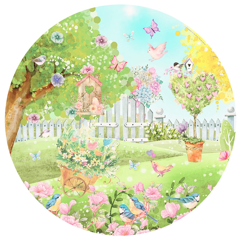 Capa Painel Redondo Decoração Jardim Encantado Sublimado Em Tecido 1,50m Com Elástico