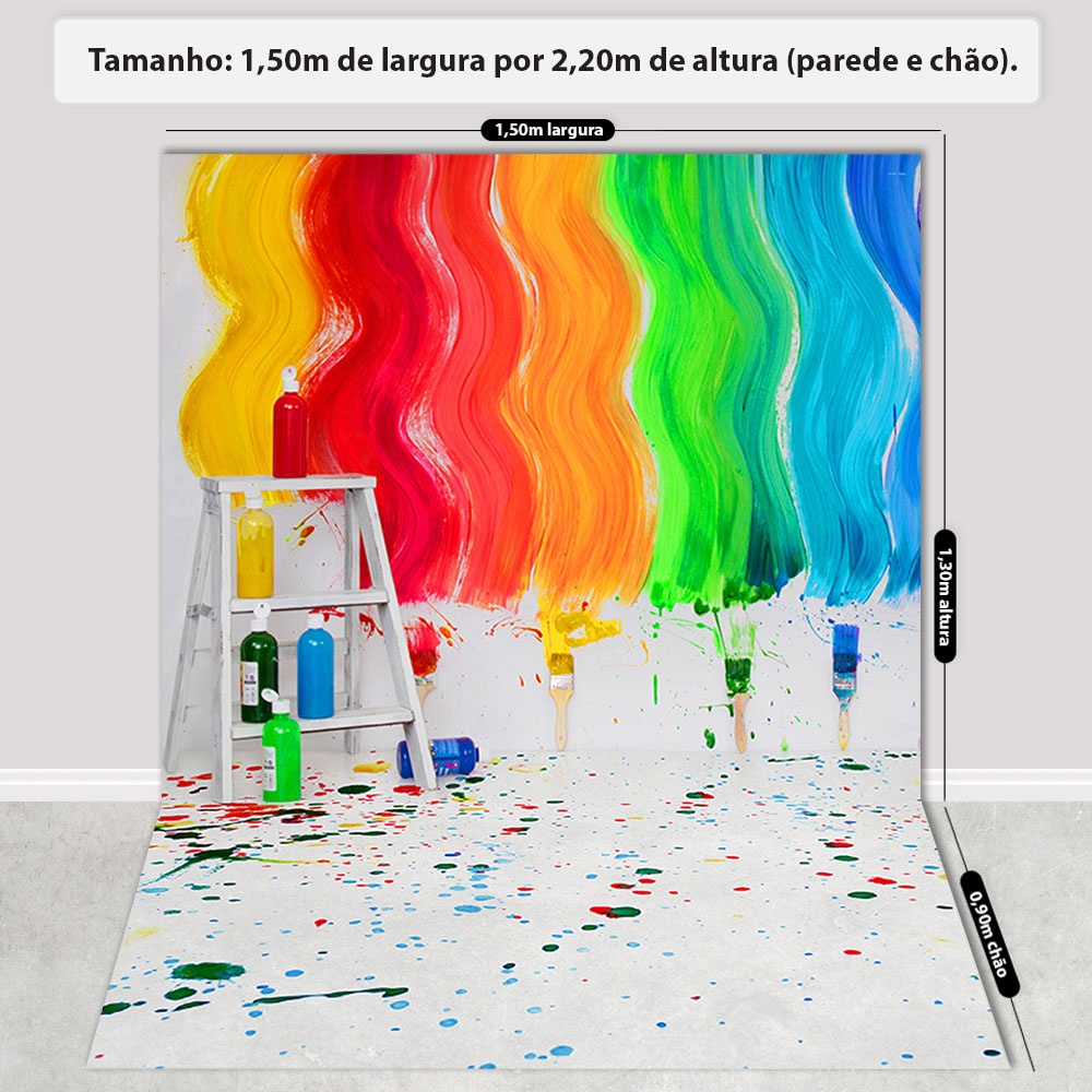 Painel Fundo Fotográfico Infantil Cenário Tinta Pintura Em Tecido Sublimado para Foto