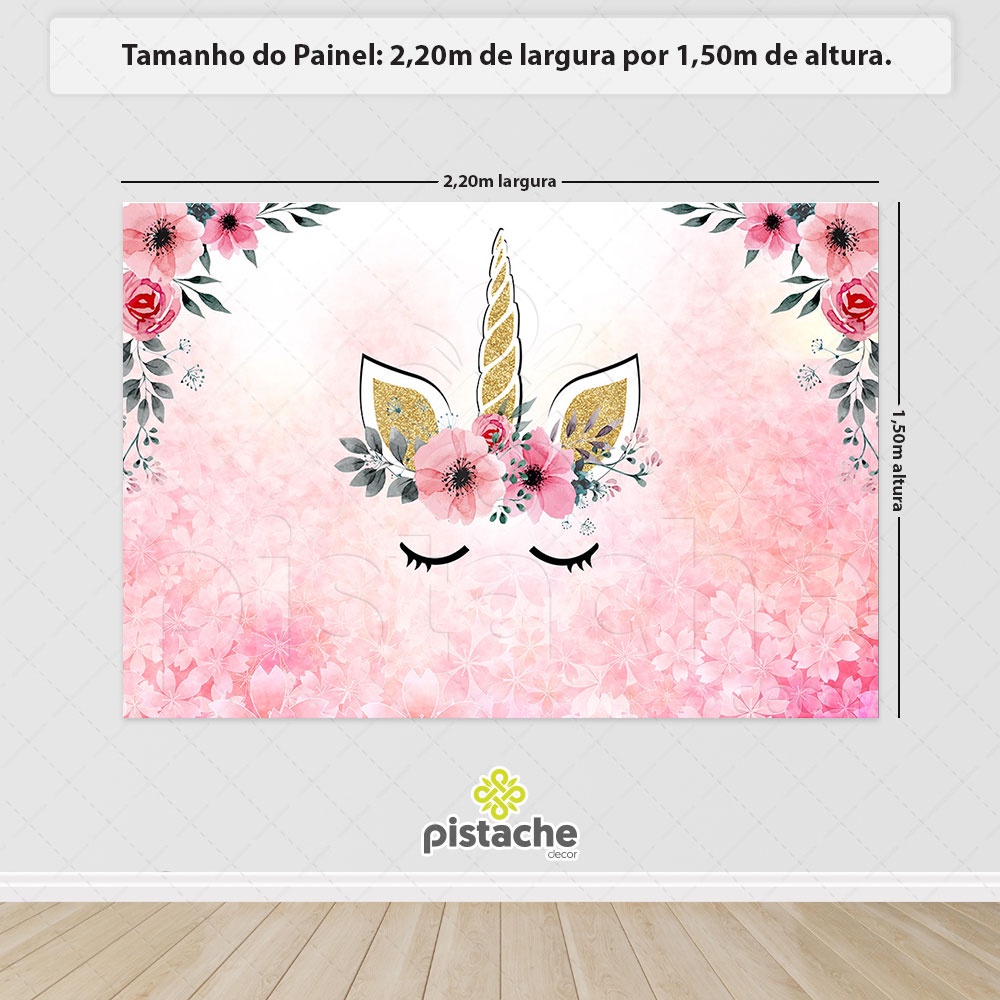 Painel de Festa Unicórnio Retangular Horizontal Estampado em Tecido Decorativo