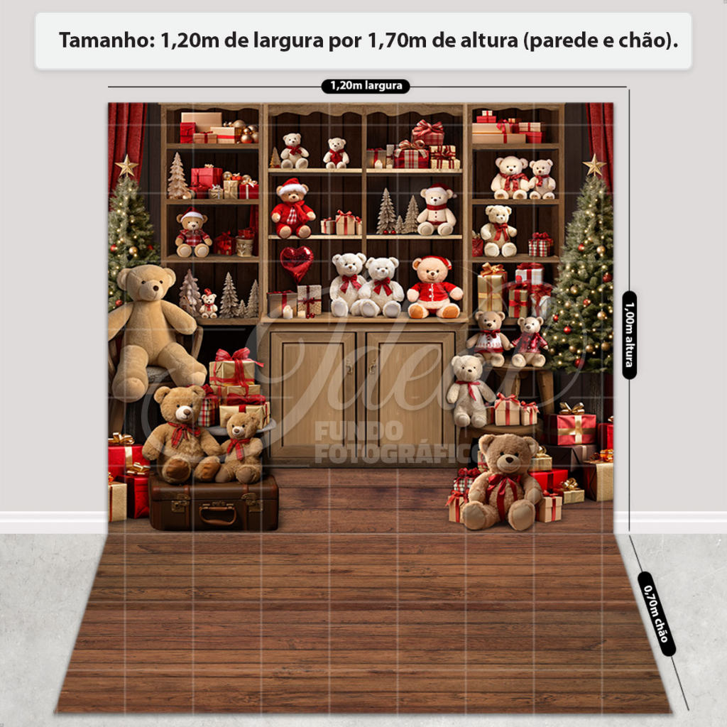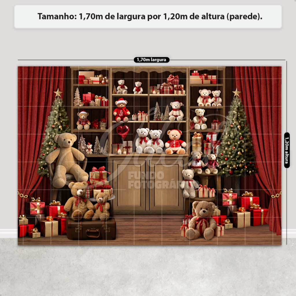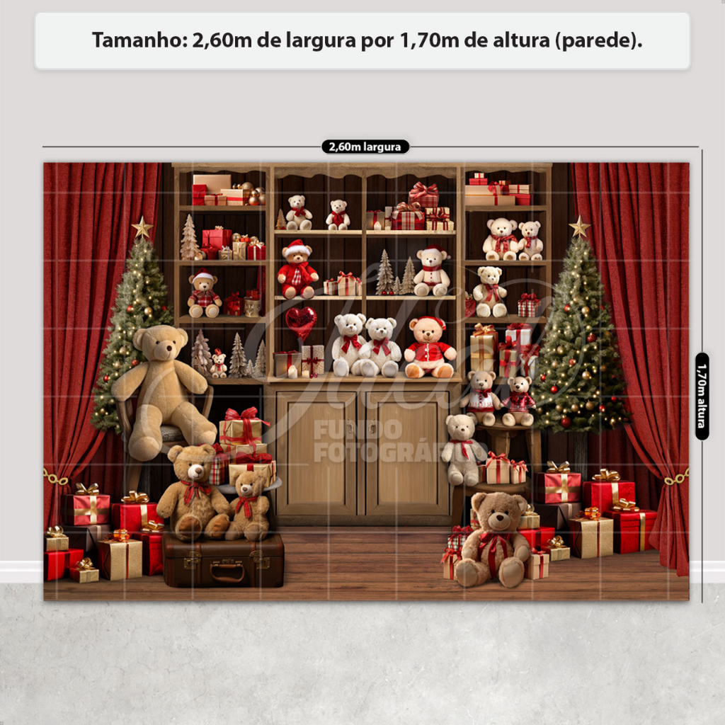 Painel Fundo Fotográfico Natal Cenário Loja De Brinquedos Em Tecido Sublimado para Foto