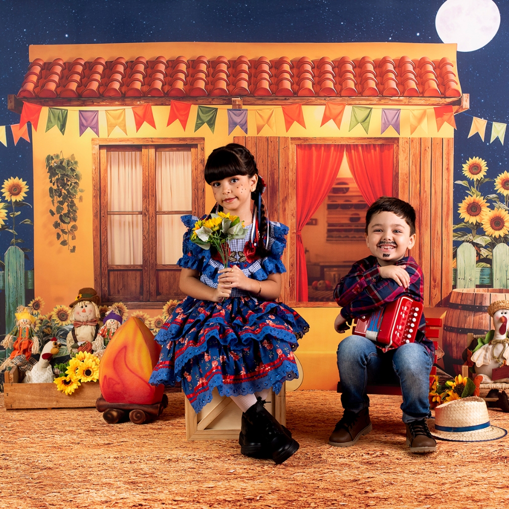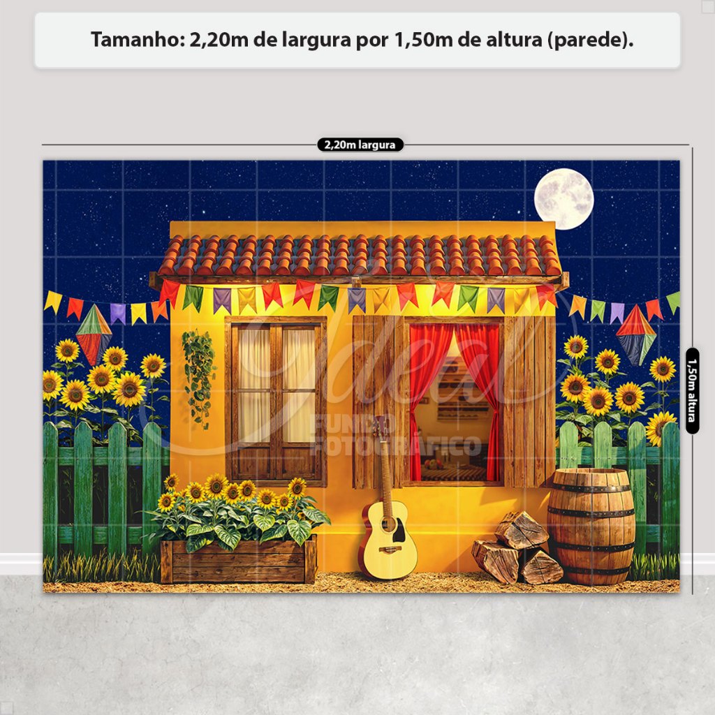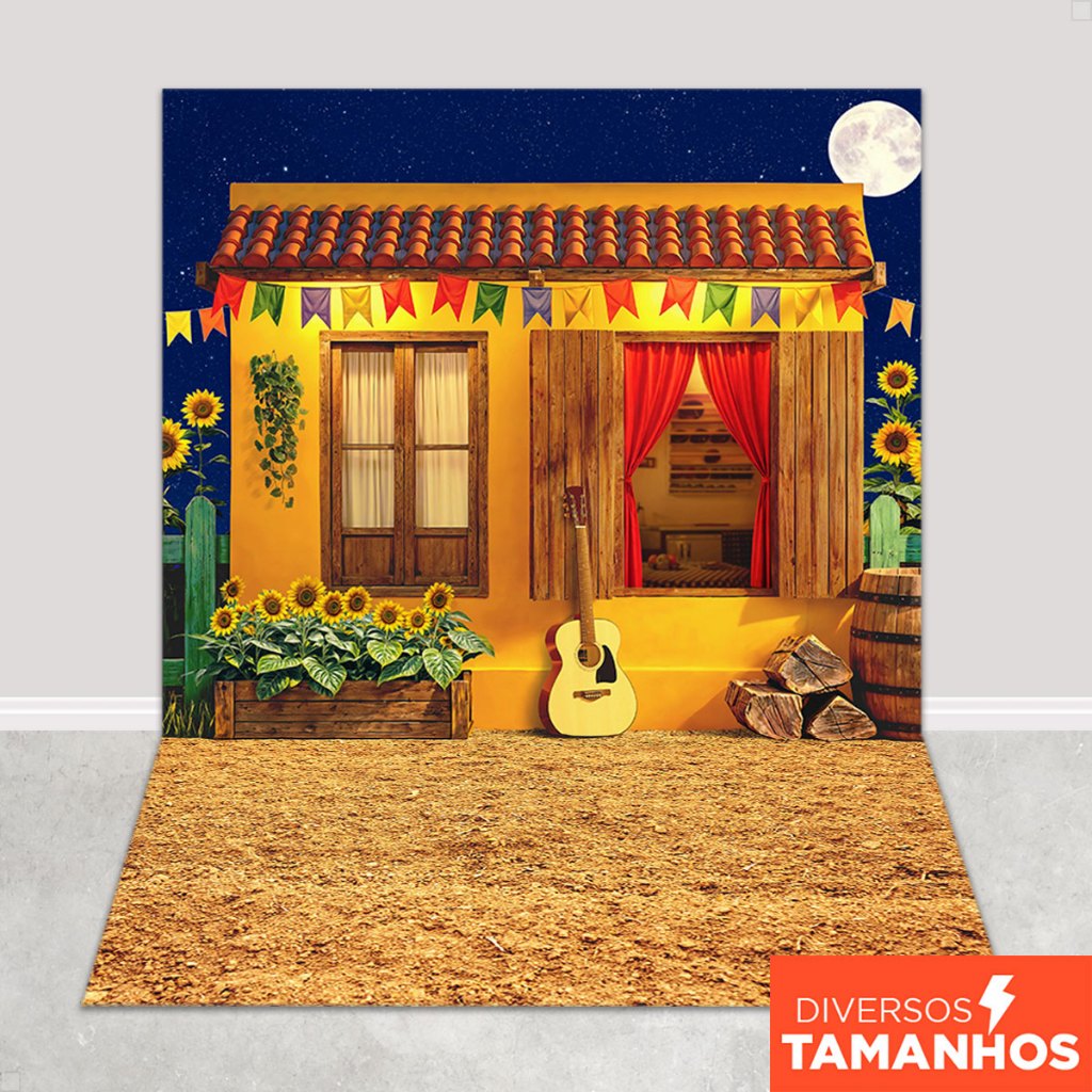 Fundo Fotográfico Festa Junina Casinha Amarela Em Tecido FJN-173