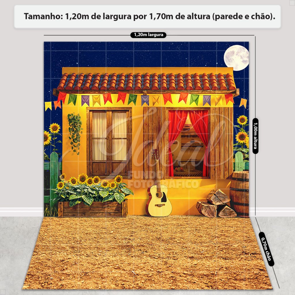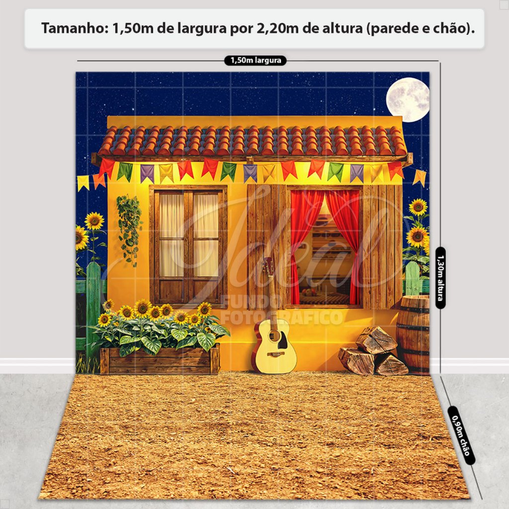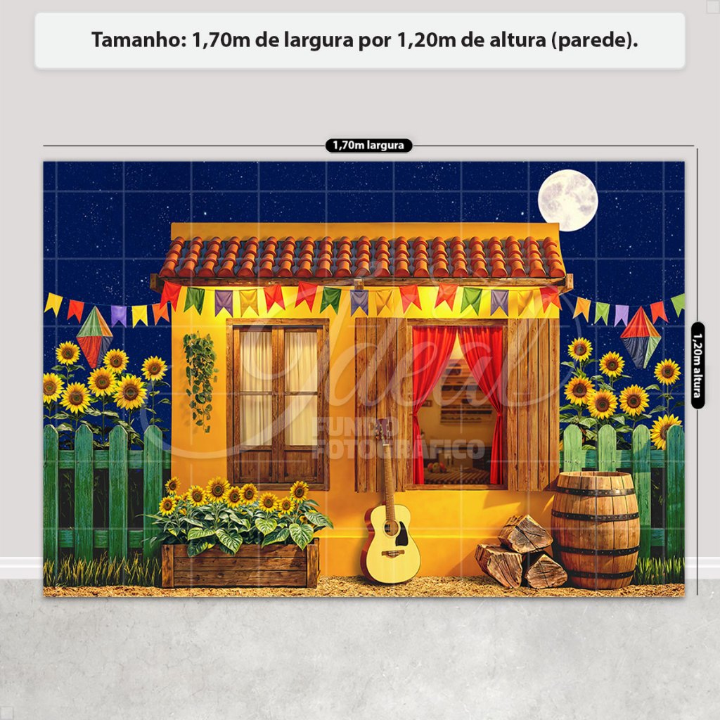 Fundo Fotográfico Festa Junina Casinha Amarela Em Tecido FJN-173