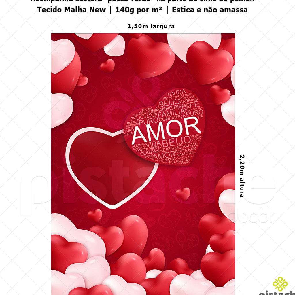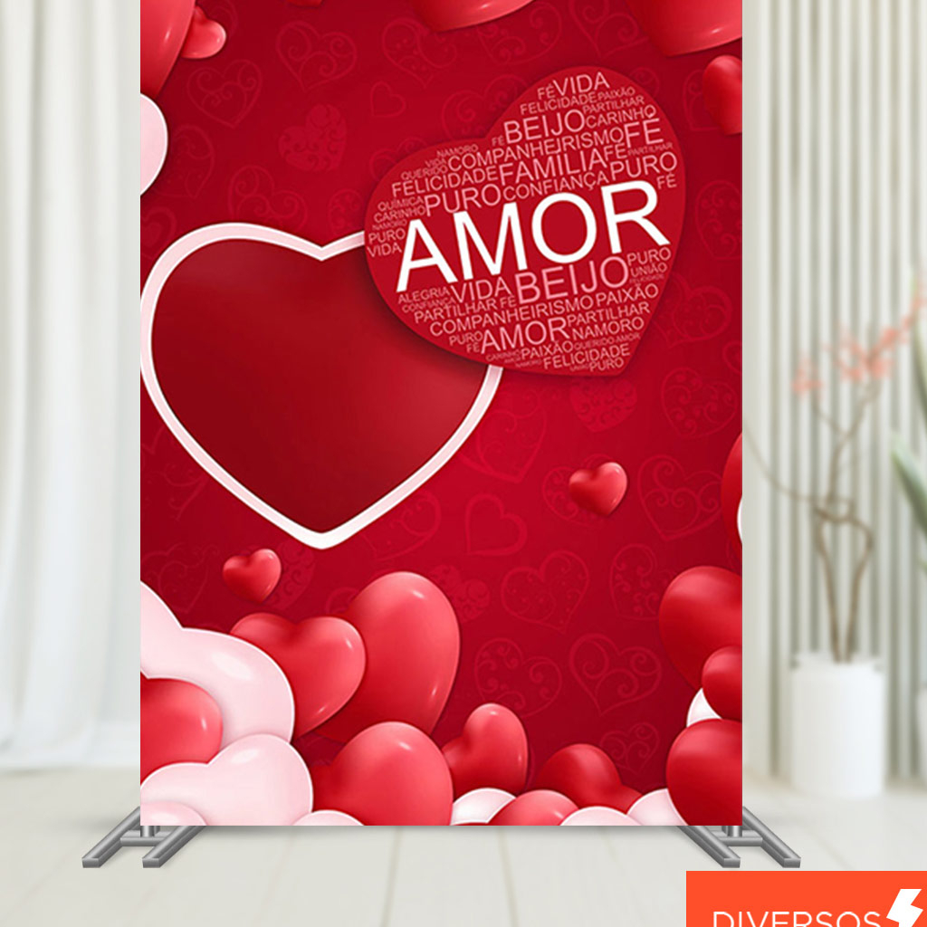 Painel Festa Retangular Decoração Dia dos Namorados Vertical Sublimado Tecido 1,50x2,20