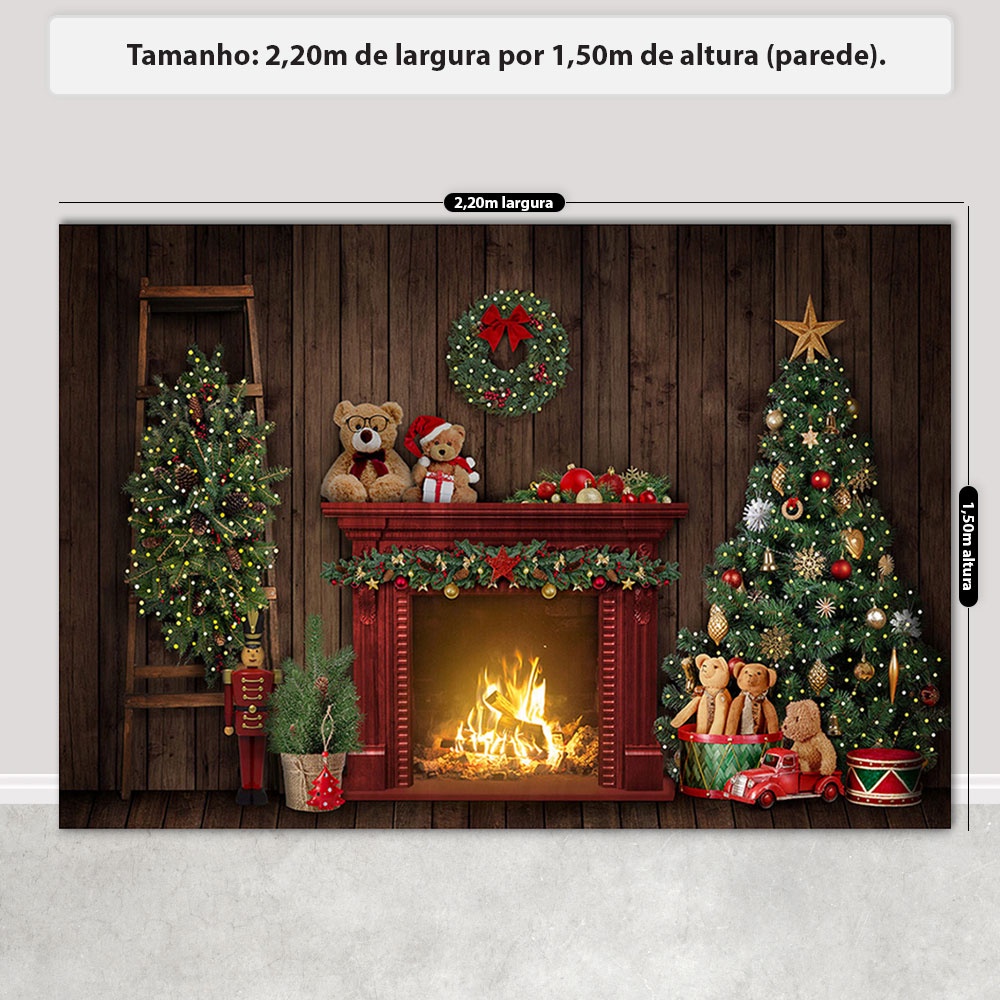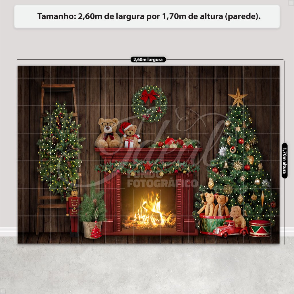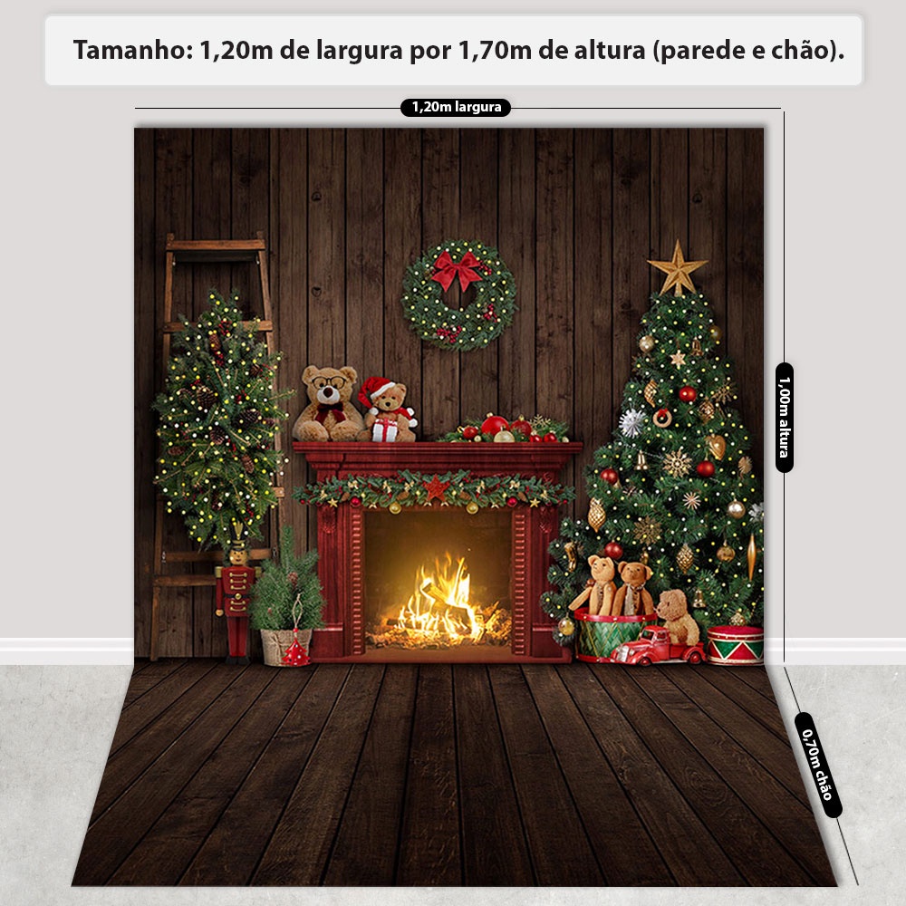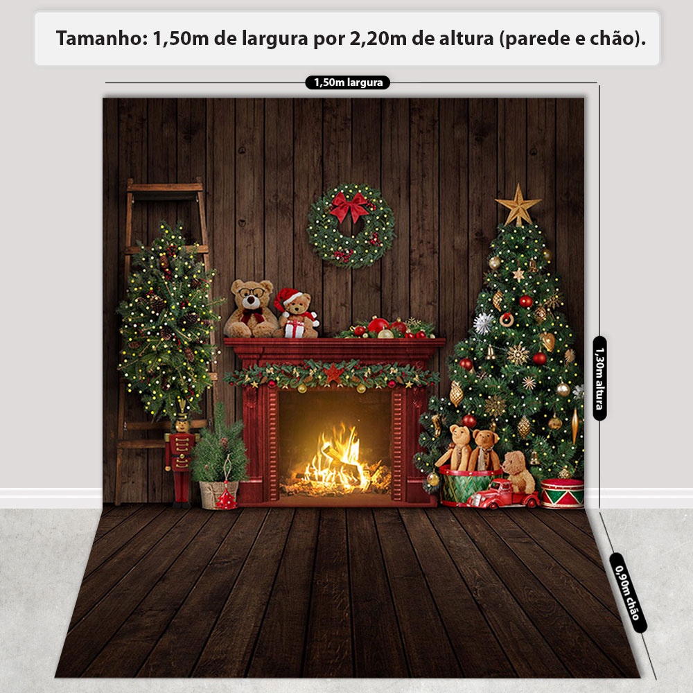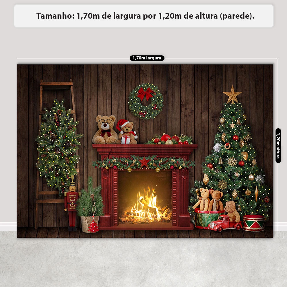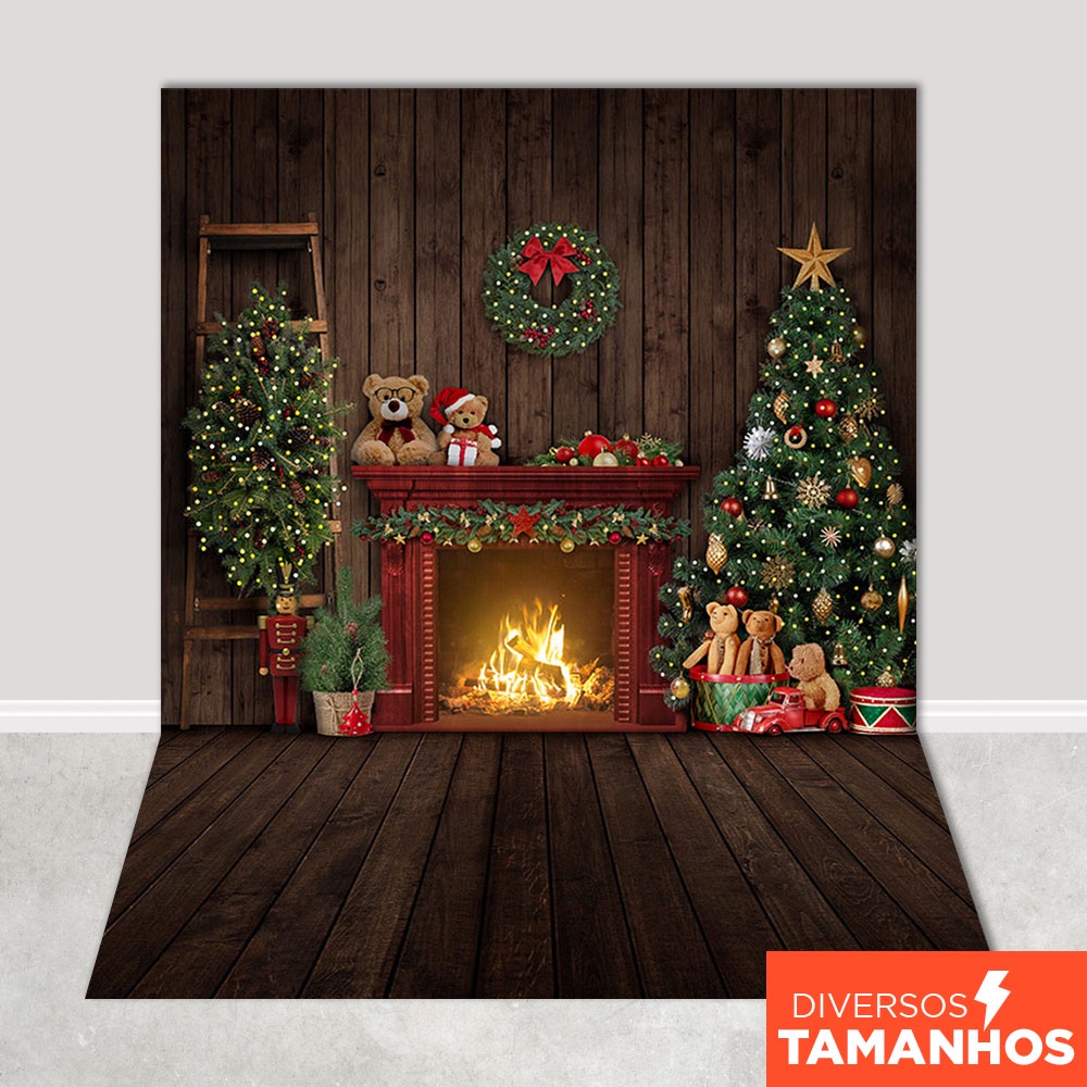 Fundo Fotográfico Natal Lareira Rústica Sublimado Em Tecido FNT-745