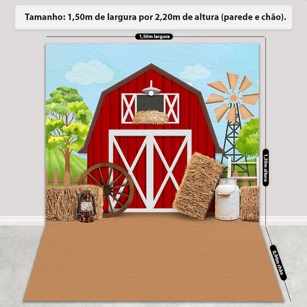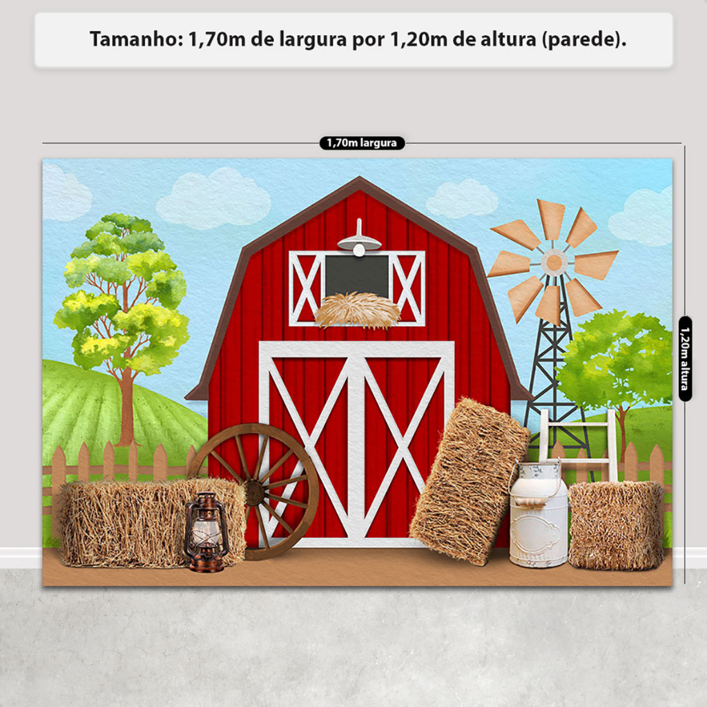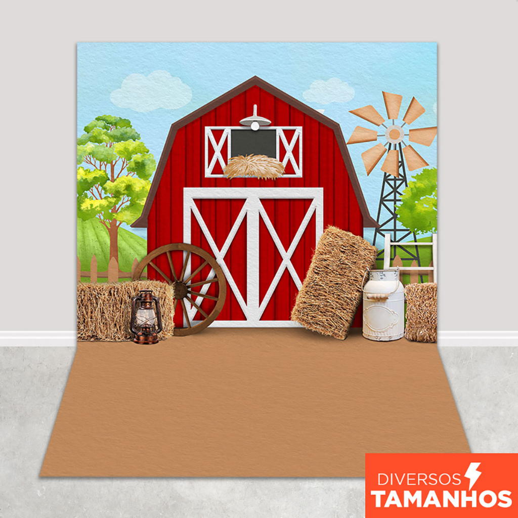 Fundo Fotográfico Fazendinha Cenário Celeiro Sublimado Painel Em Tecido Sublimado para Foto
