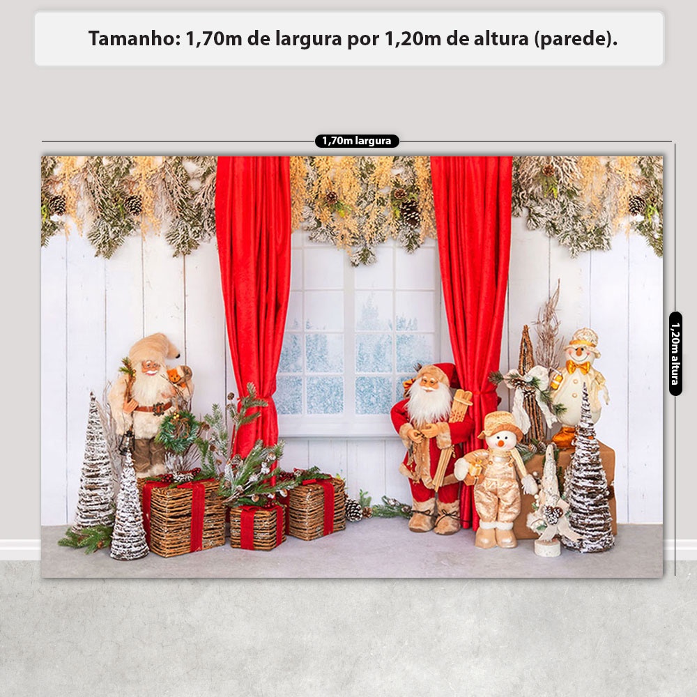 Fundo Fotográfico Natal Cenário Papai Noel Boho Painel Em Tecido Sublimado para Foto