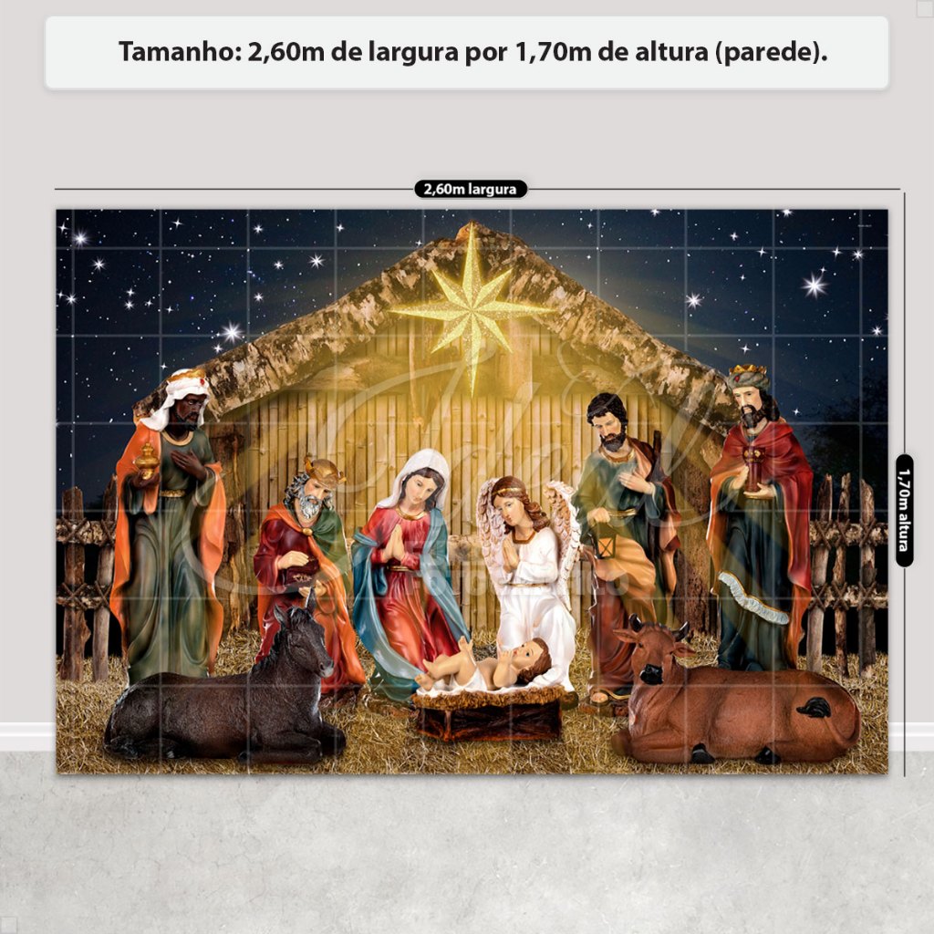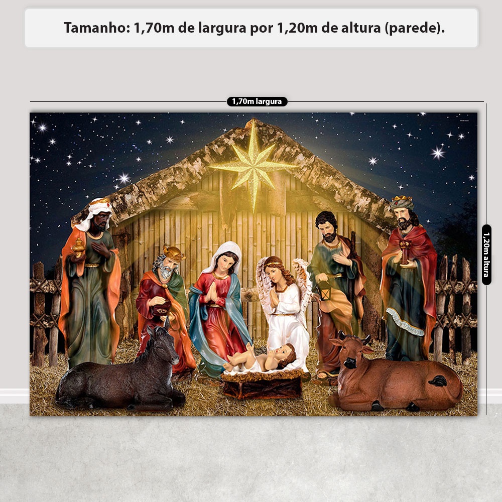 Painel Presépio de Natal Decoração Fundo Fotográfico Natalino Para Fotos Em Tecido Sublimado
