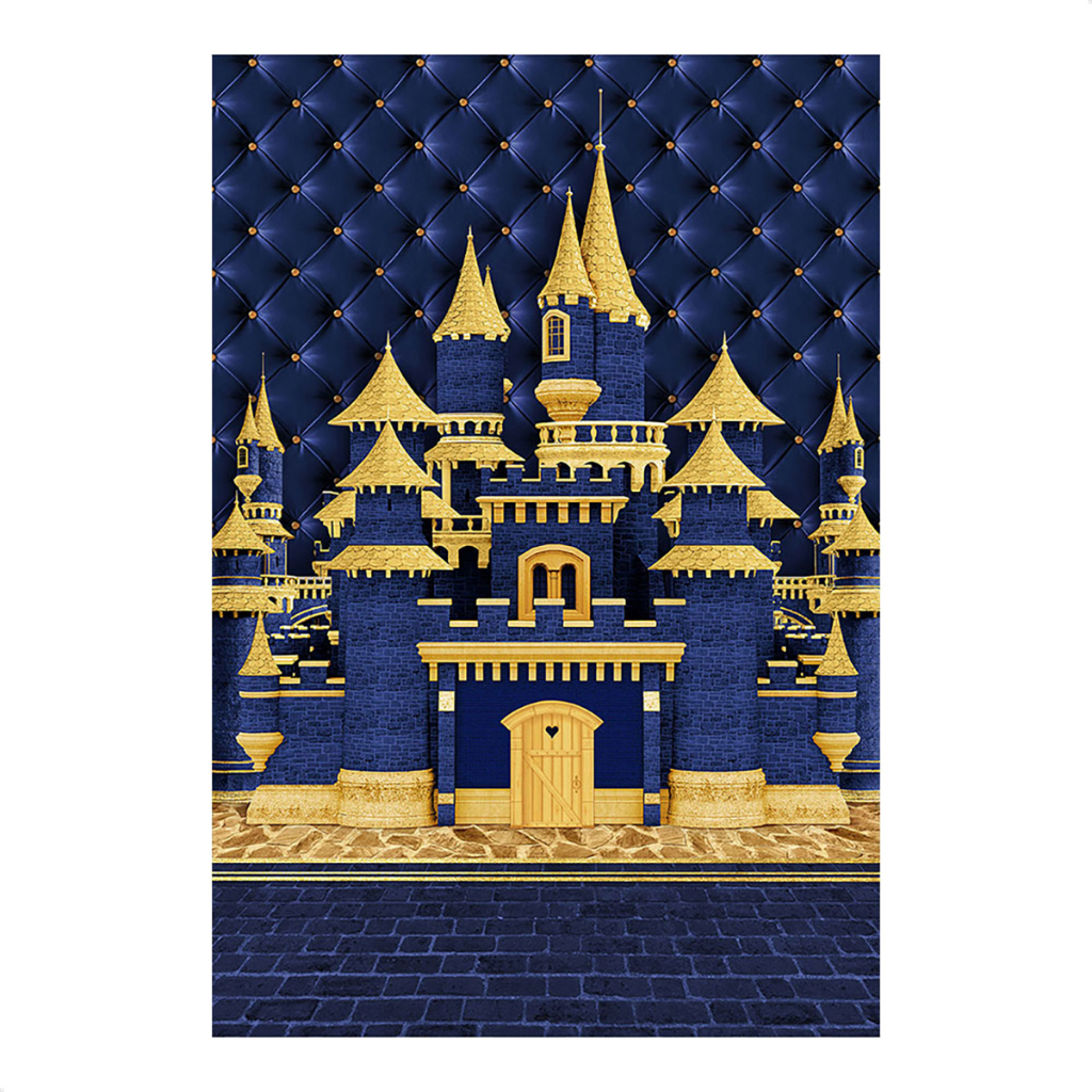 Painel de Festa Realeza Menino Castelo Retangular Lateral Sublimado Em Tecido 1,50x2,20m
