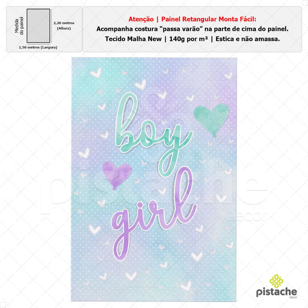 Painel de Festa Decoração Chá Revelação Retangular Lateral Sublimado Em Tecido 1,50x2,20m