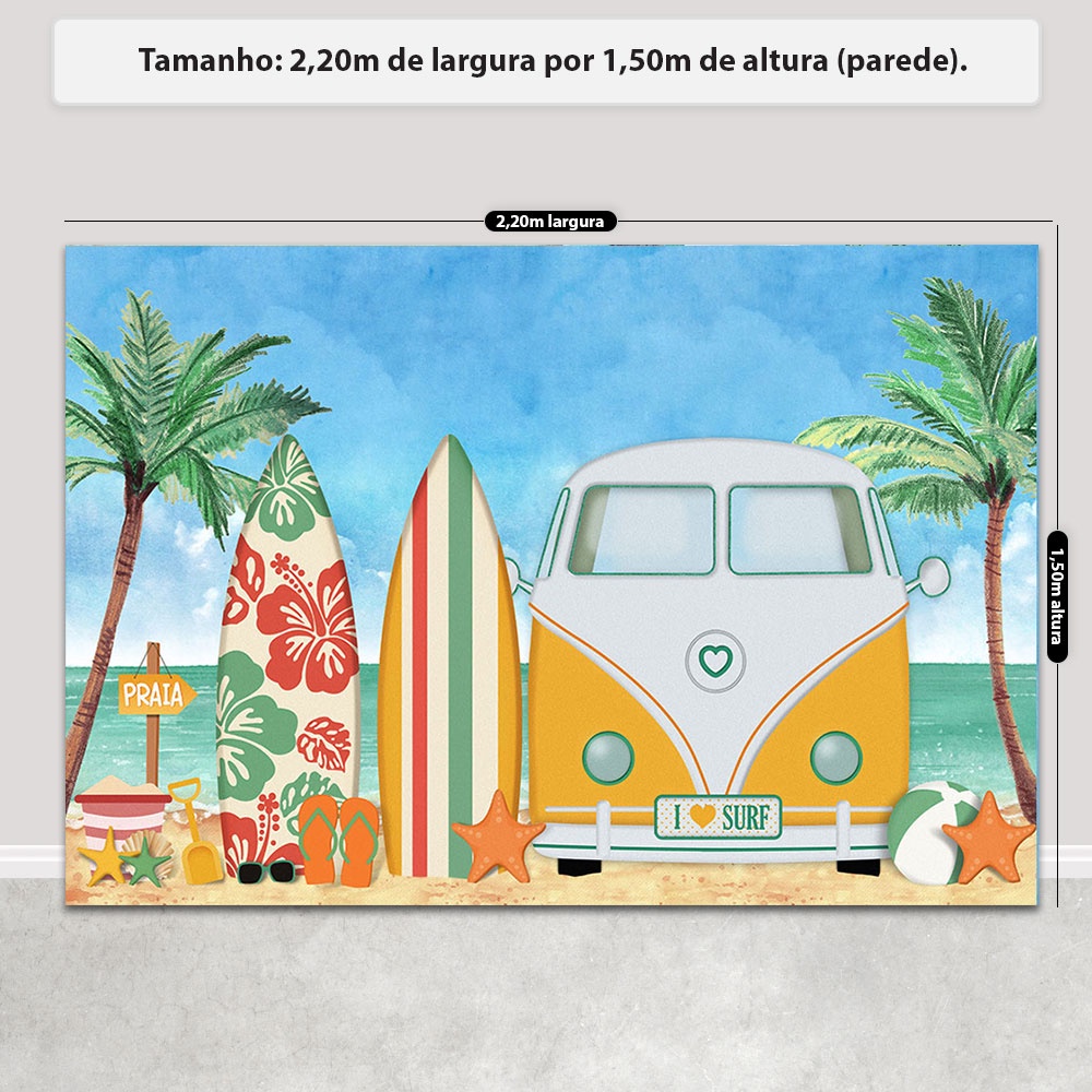 Painel Fundo Fotográfico Praia Cenário Kombi Sublimado Em Tecido - FFP-137