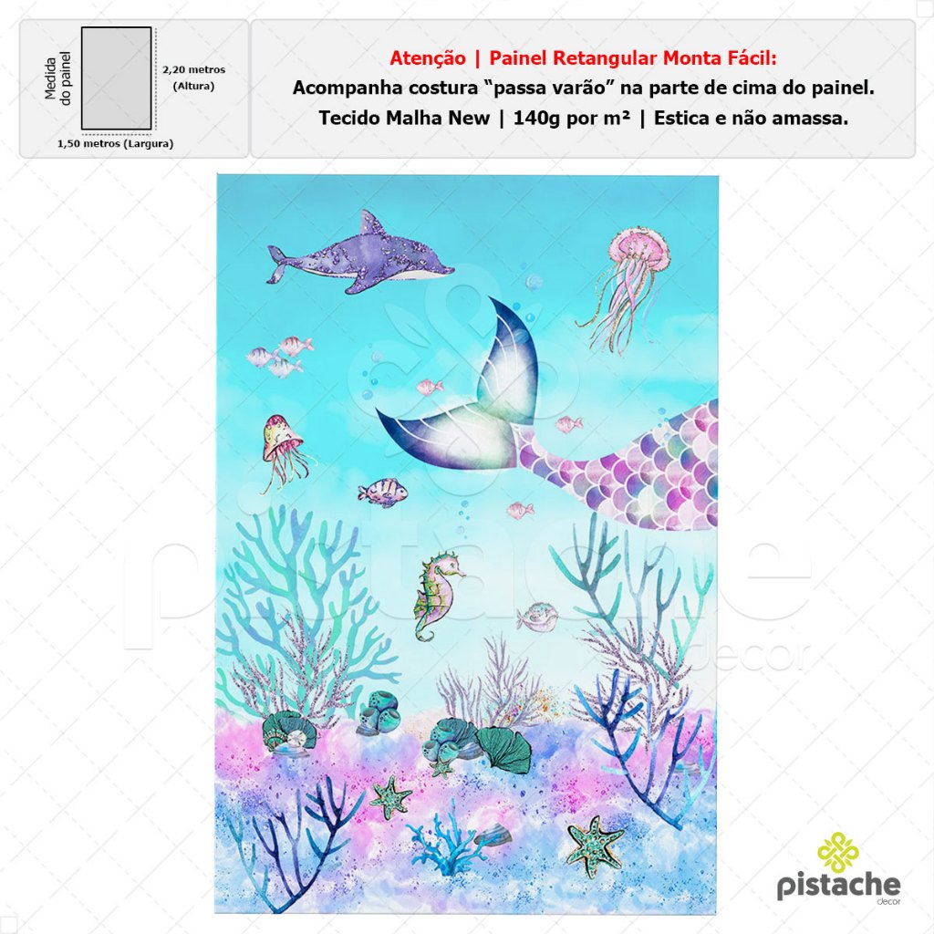 Painel Festa Fundo Do Mar Retangular Vertical Lateral Sublimado Decoração Em Tecido 1,50x2,20m