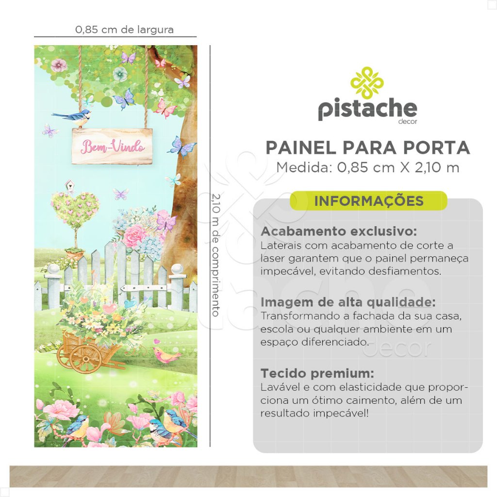 Capa de Porta Quarto Infantil Jardim Encantado Bem-Vindo Em Tecido Sublimado 0,85x2,10m - ANV-2961