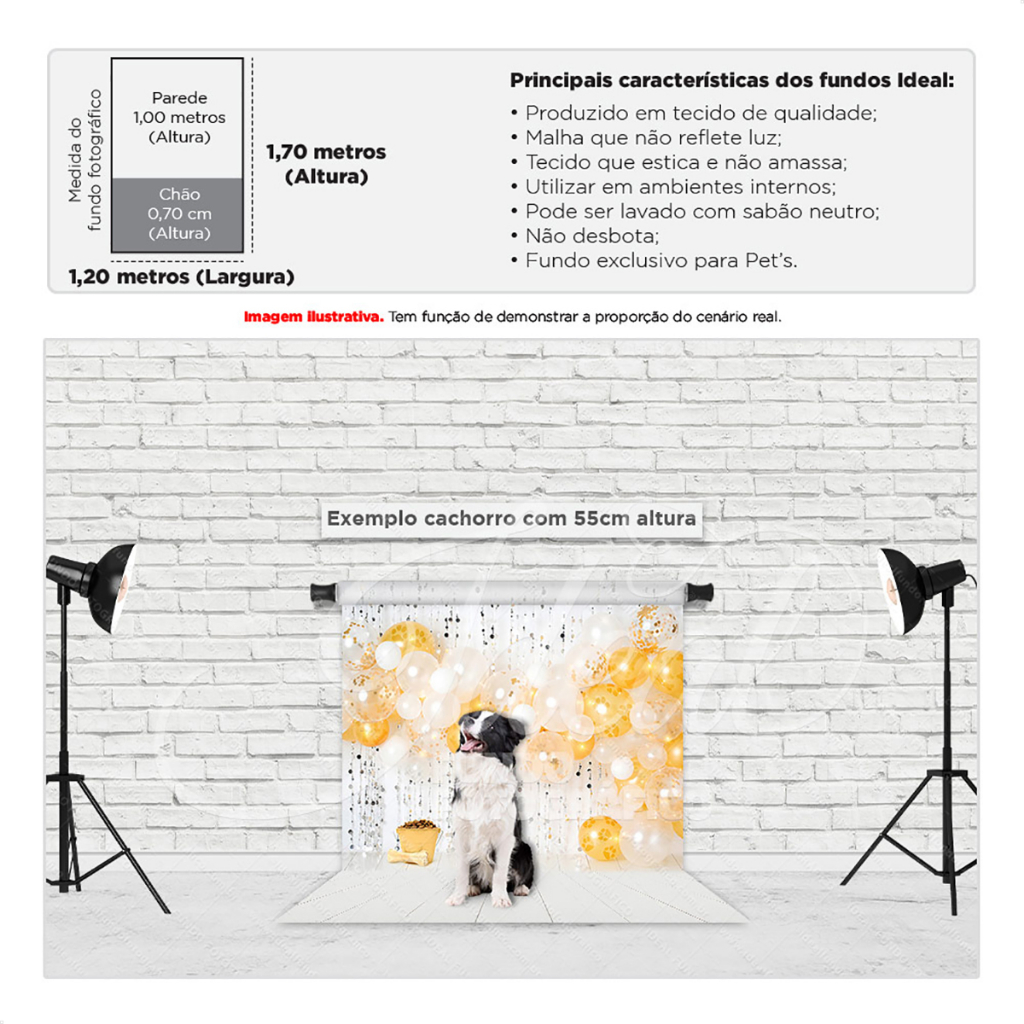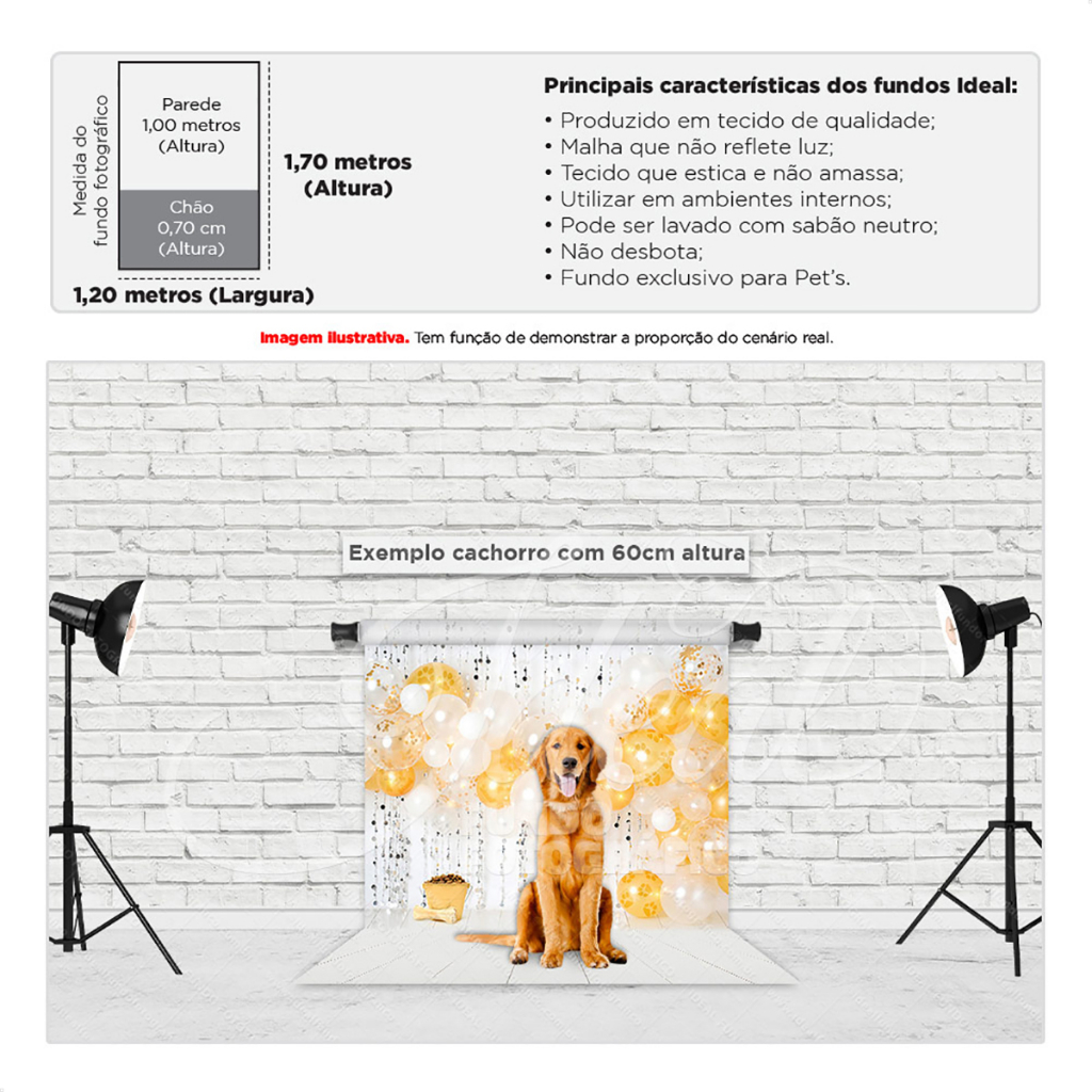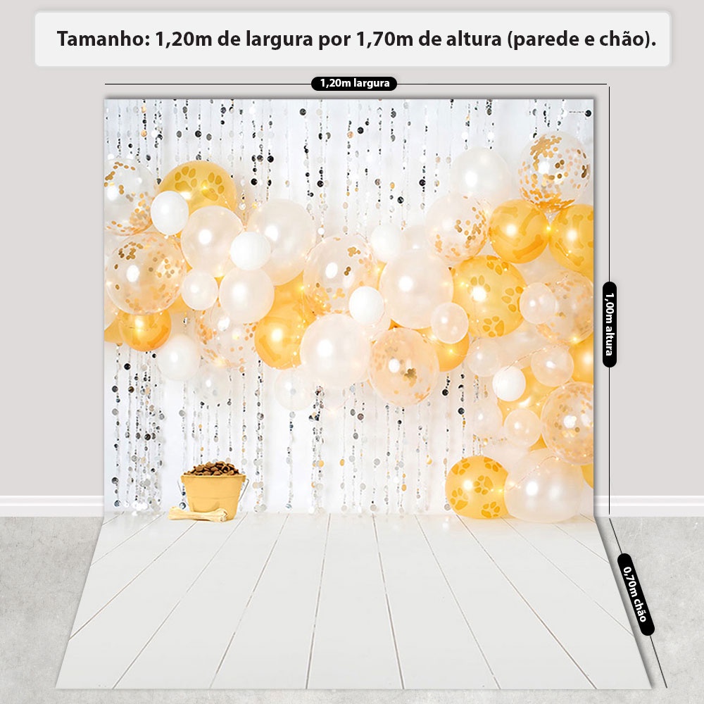 Fundo Fotográfico Pet Shop Ano Novo Dourado Cenário Em Tecido para Foto 1,20x1,70m - PET-08
