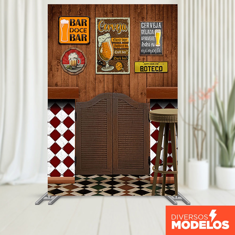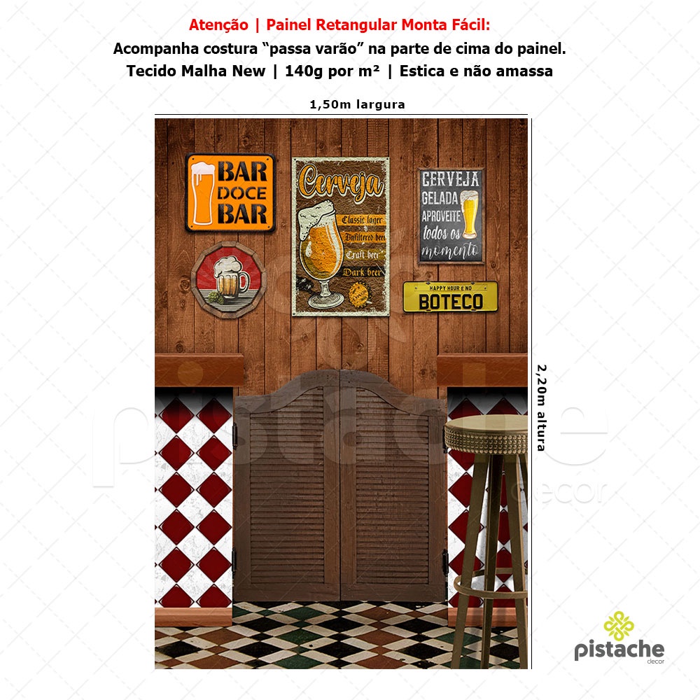 Painel Retangular de Festa Boteco Decoração Bar Retangular Lateral Sublimado Em Tecido 1,50x2,20m