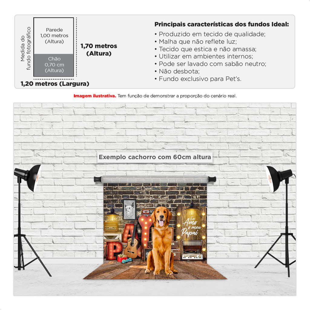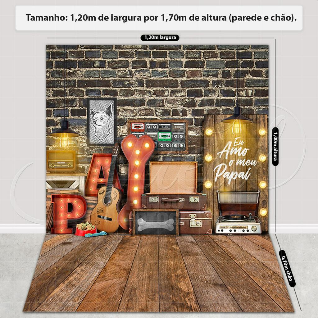 Fundo Fotográfico Dia dos Pais Pet Música Retro Painel Cenário Em Tecido 1,20x1,70m - PET-37