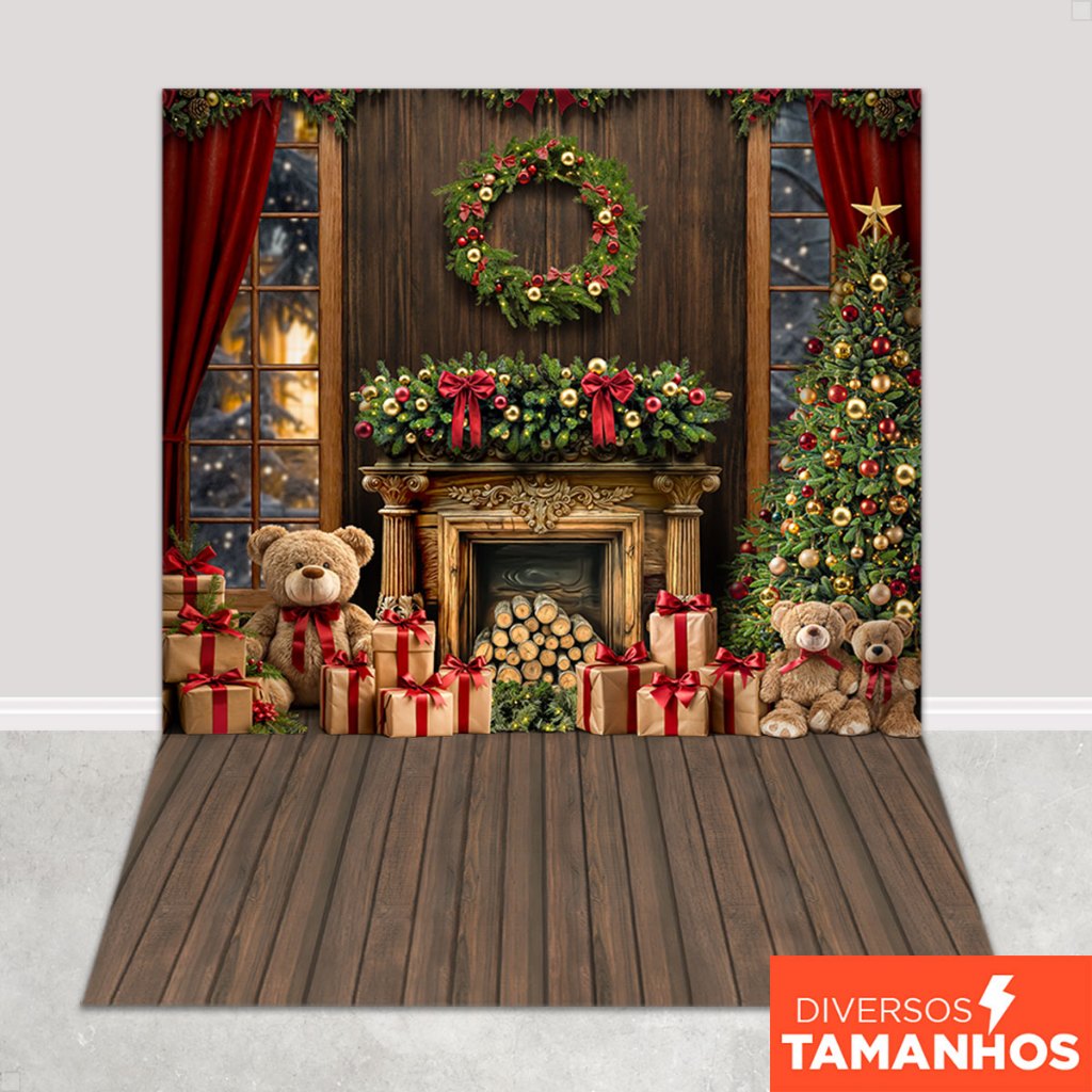 Painel de Natal Decoração Fundo Fotográfico Cenário Ursinhos para Fotos Em Tecido Sublimado