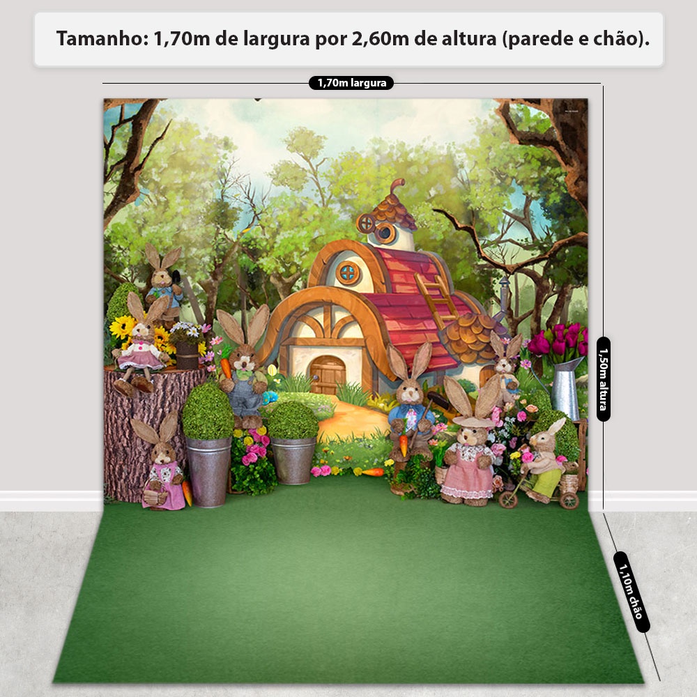 Fundo Fotográfico Cenário de Páscoa Jardim dos Coelhos Painel Em Tecido Sublimado